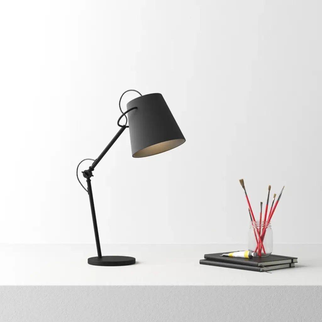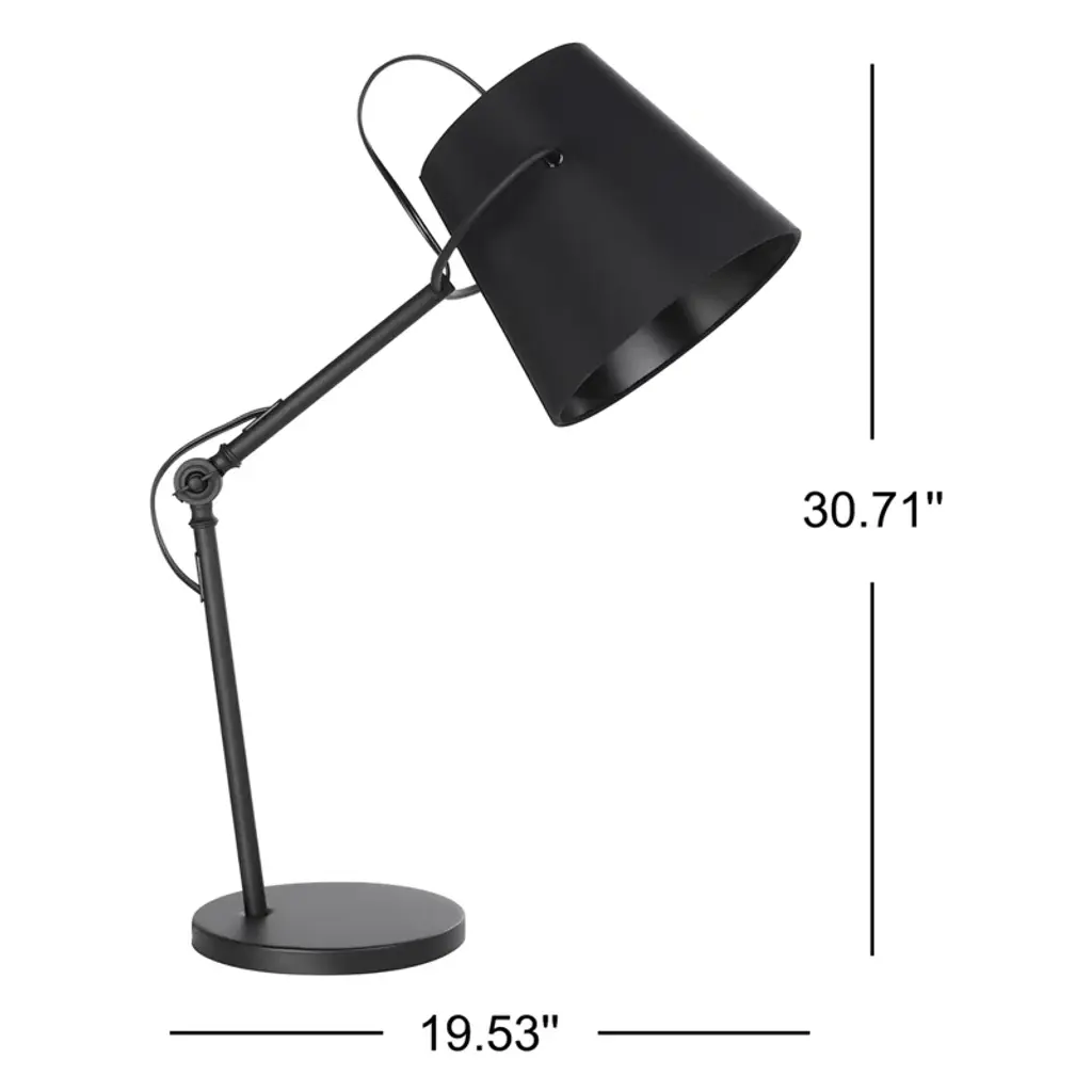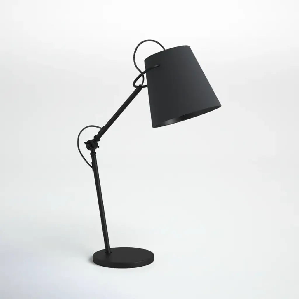 Inspired by function-forward industrial lighting, this desk lamp showcases an iconic – and highly adjustable – swing-arm silhouette. It’s built from sturdy steel with a black finish + arrives with a black fabric empire shade for a sleek monochrome look that we love. A 40W bulb is sold separately and controlled by an in-line cord switch for added convenience.
