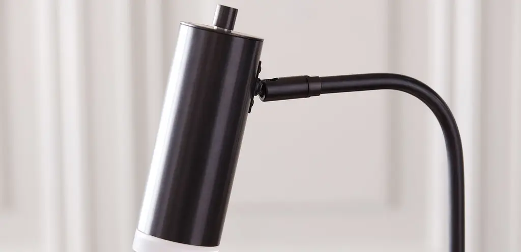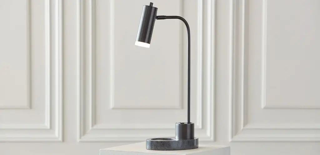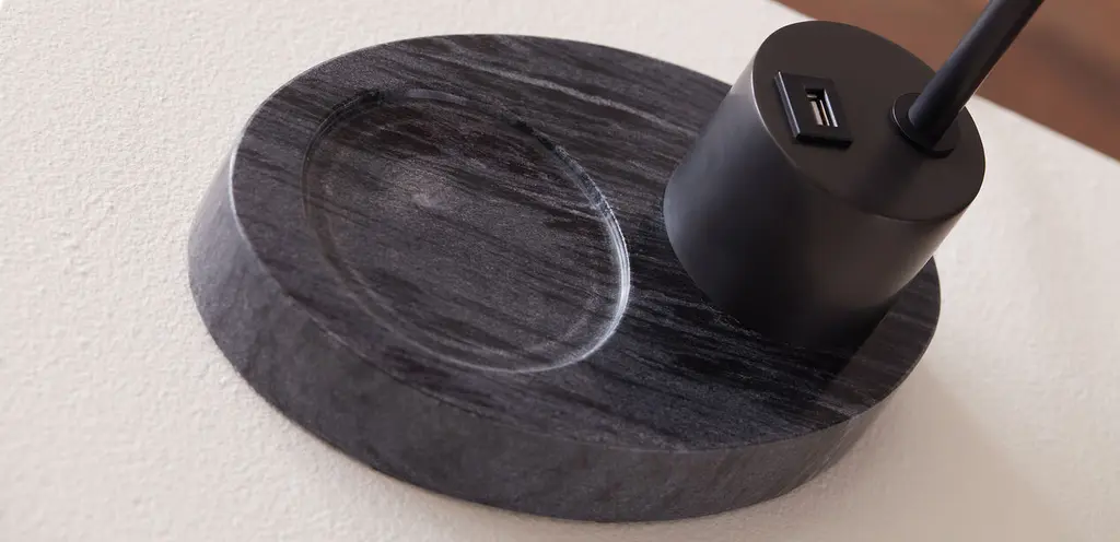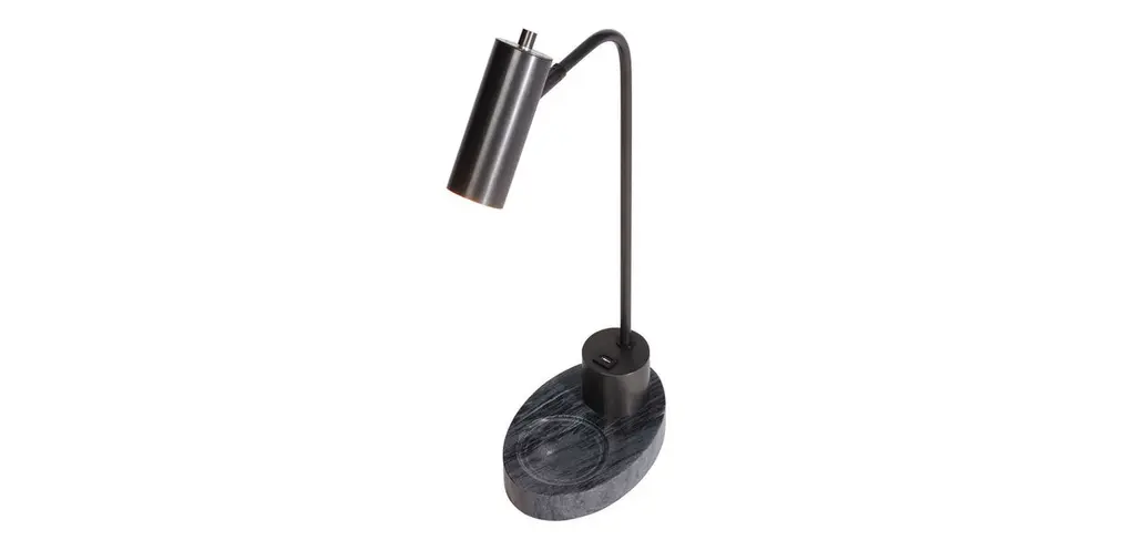 Sturdy and simple, Denten sports a minimalist shape, a steel body, and a marble base for structure and style. Its adjustable head includes a removable layer of acrylic that enhances its light while consuming much less energy than incandescent lamps.