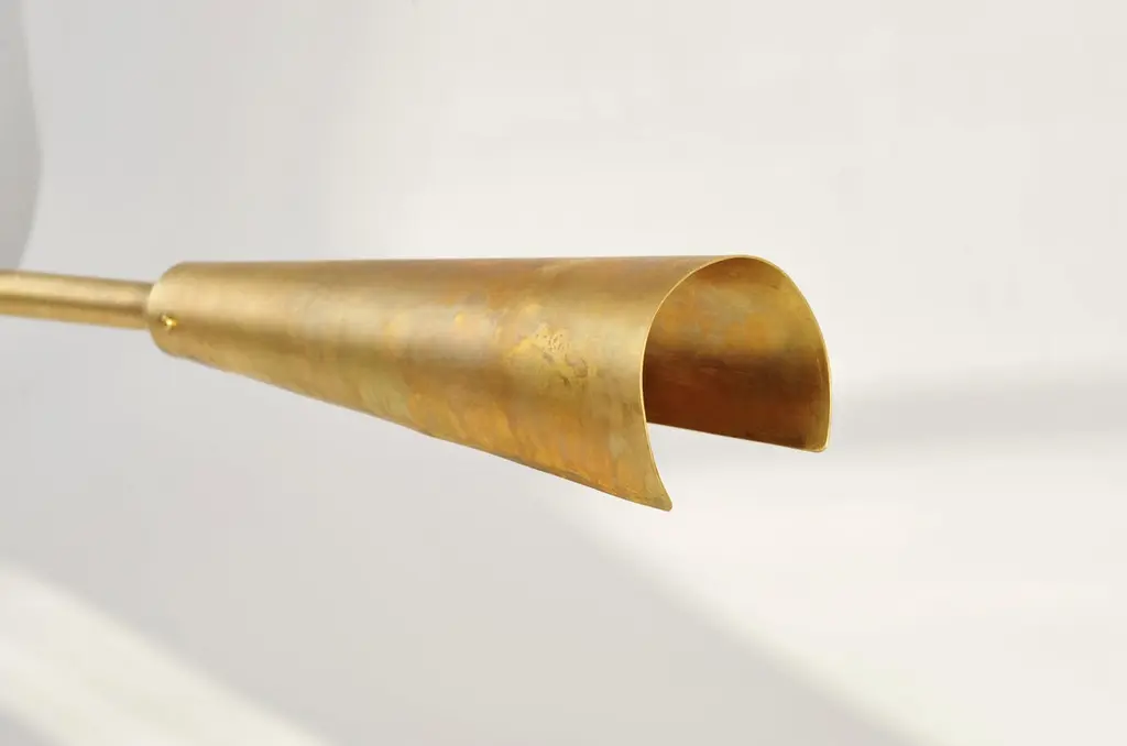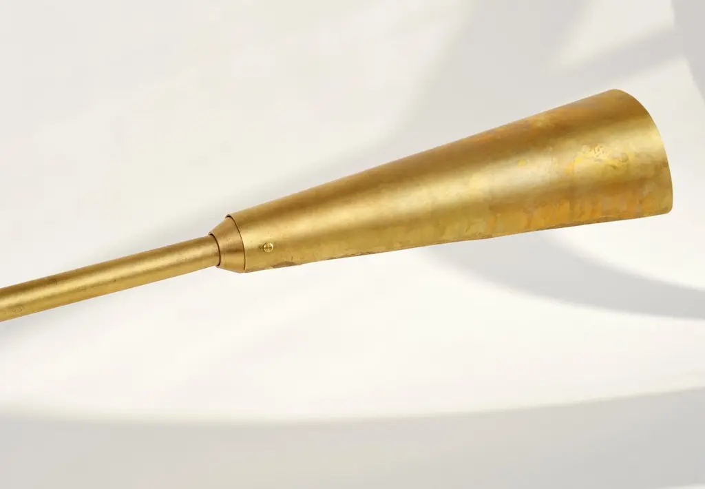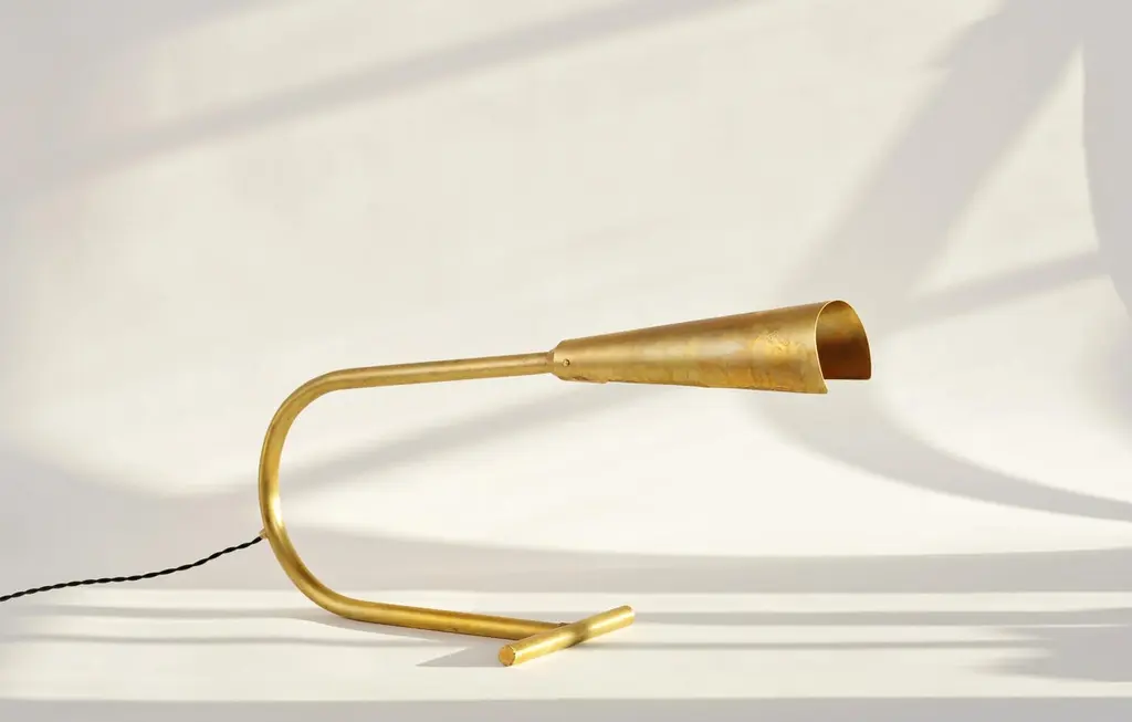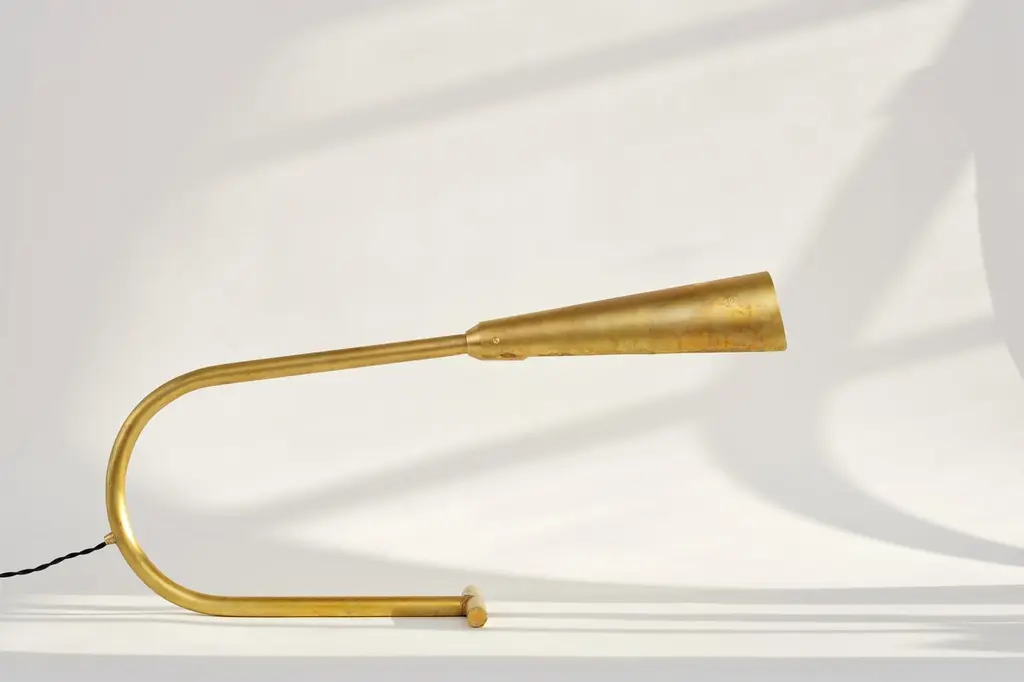 Desk lamp by Lukasz FriedrichDimensions: 67 x H 34 cmMaterials: Patinated brassAll our lamps can be wired according to each country. If sold to the USA it will be wired for the USA for instance.Lukasz Friedrich (born 1980), lives and works in Warsaw. He is a self-taught designer and craftsman. Lukasz grew up in and around gloomy and dusty metal workshop of his grandfather and father. In this family run manufacture he first met and got acquainted with accidental, not intended beauty of purely technical environment. Fascinating lathe machines and heavy pneumatic hammers not to mention poetic and almost ancient frame saw were his first objects of fascination. Once playground this old, no longer existing workshop later became his source of inspiration.Academic studies in social science with focus on cultural anthropology gave him professional insight into artifacts of human creation. During extensive fieldwork he once again fell in love with things small and omitted but visually very appealing. After getting his MA in Cultural Anthropology he entered family workshop as a co-worker. During years spent at working table manufacturing commissioned pieces, Lukasz was developing his own craft. Skills he gained allow him to hand make mostly every design he intends.He still gets his inspiration from technical surrounding. Very often possibilities and limitations given by materials become questions seeking answer. He likes his items raw but undoubtedly finished. Elegance and sophistication may be enclosed in the most simple shapes of often almost ordinary objects.