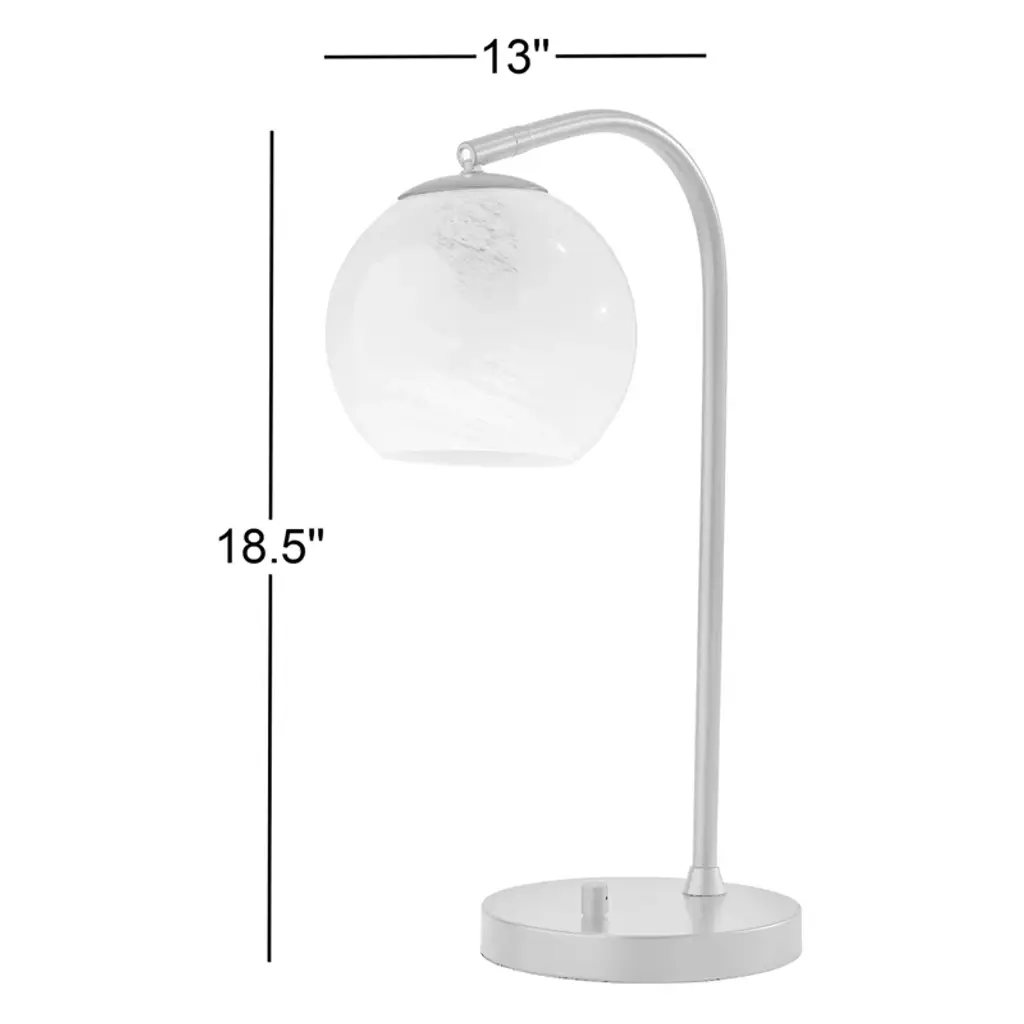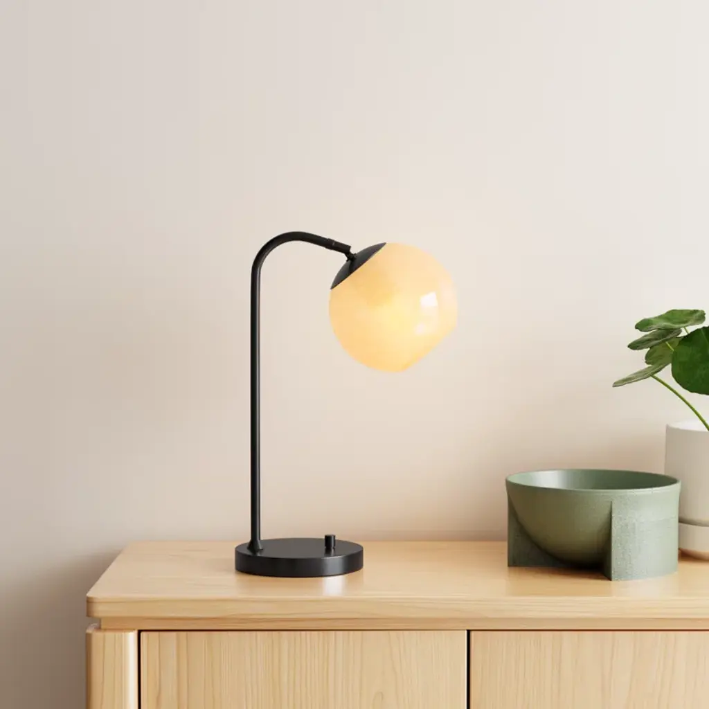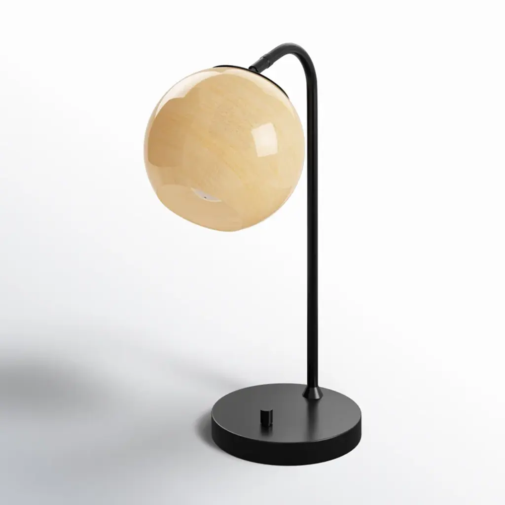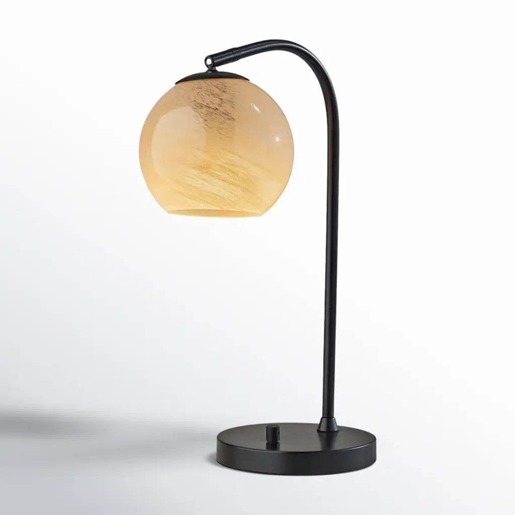 This table lamp illuminates your space with plenty of light and a modern feel. Its base is crafted from stainless steel in a neutral black hue and a circular base. The design features an arching slim neck supporting the single fixture. We love that it comes with an elegant spherical glass shade in a beige ombre hue that reminds us of a planet – plus it diffuses the shine from the standard bulb inside (sold separately). This table lamp adds shine and character to your sideboard, nightstand, or desk.