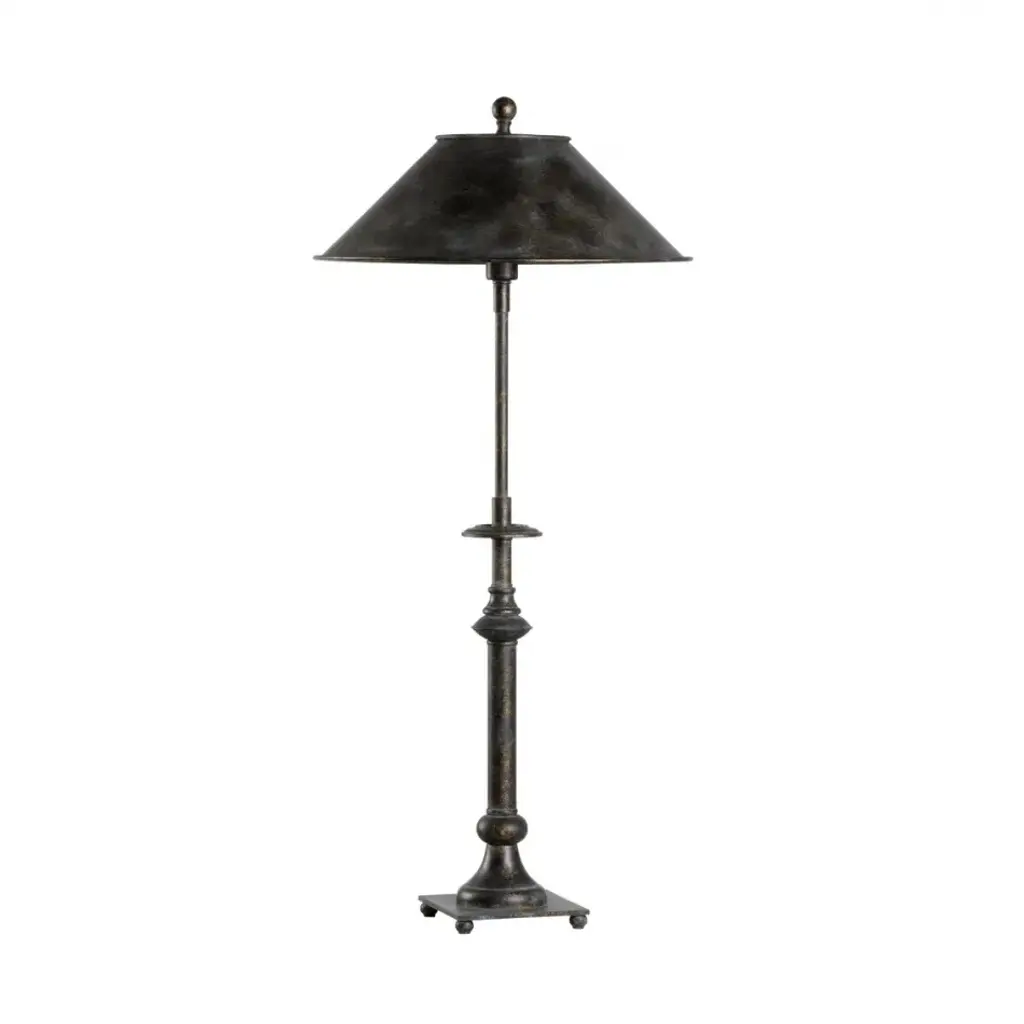28" H Antique Old Bronze 2 Column Desk Lamp