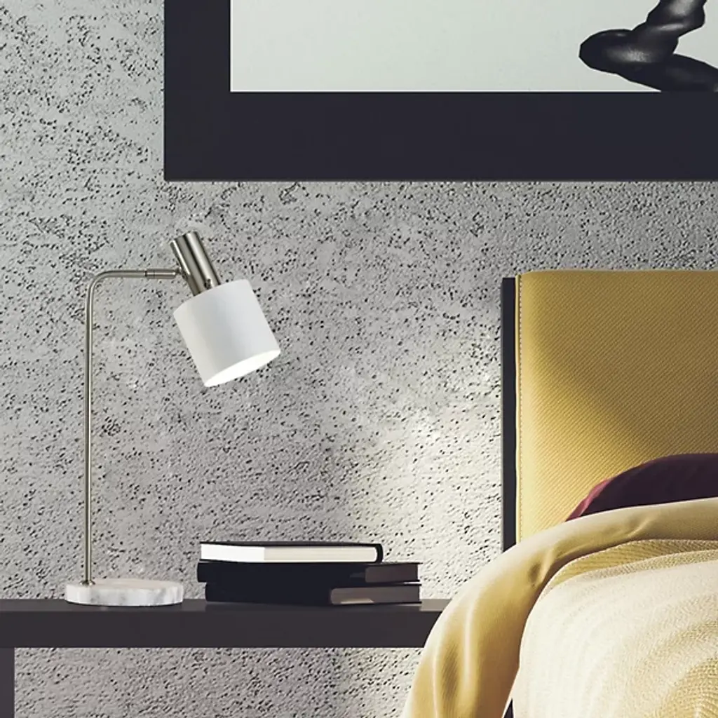 An unforgettable piece for modern spaces, the sleek design of the Emmett Desk Lamp from Adesso accents spaces beautifully, elevating the smaller surfaces of the home. A thick, rounded marble base mounts a slim, smooth metal body that gracefully curves toward a matching lamp base and a wide, cylindrical shade that contains a single bulb. The light emitted is bright and focused, and the shade is adjustable, ensuring the light flows where it’s needed most.