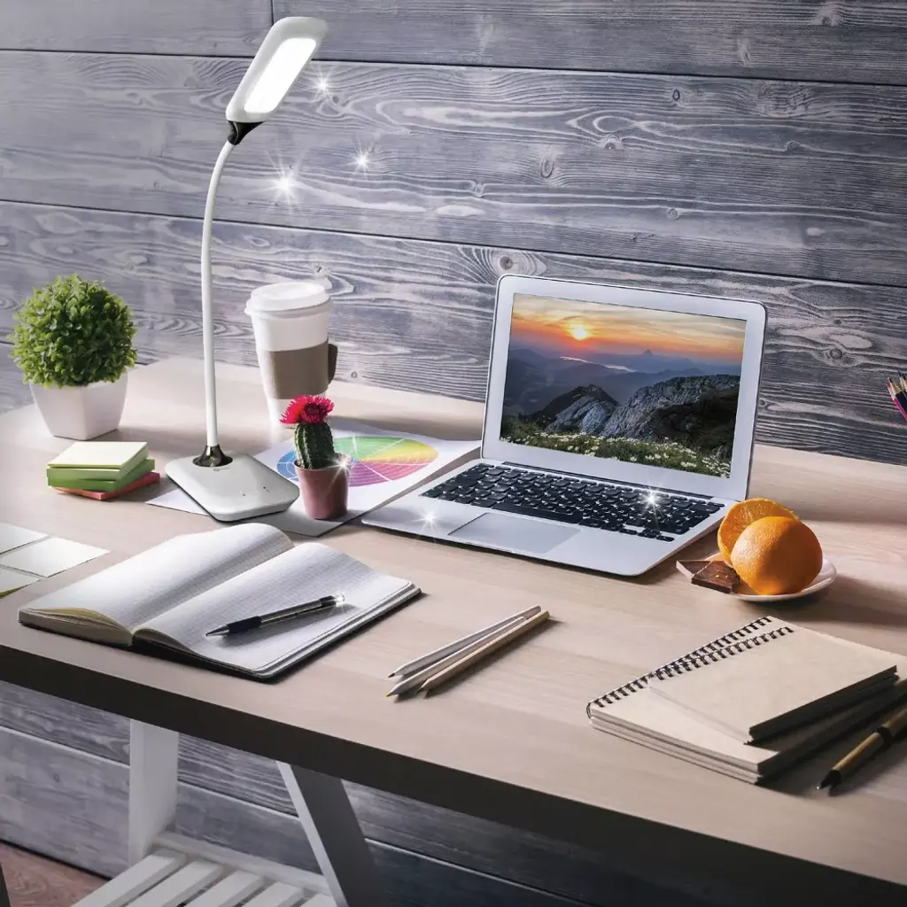 OttLite brings you the only desk lamps designed to break down harmful microorganisms. Now you can have proven cleaning power right at your desktop with SpectraClean™ visible light disinfection. Using a precise formulation, SpectraClean’s patented technology has been shown to kill potentially harmful bacteria like those prevalent on mobile phones and desktops. Create a healthier workspace every time you turn on your light! The OttLite Enhance LED Sanitizing Desk Lamp also features the eyestrain-reducing power of ClearSun® LED technology – shown to reduce eyestrain by up to 51%. This exclusive low glare, high contrast illumination is as close to natural daylight as you can get and has a superior color rendering index of 95+. Customize your lighting experience with three brightness settings and choice of modes including ClearSun Only, ClearSun + SpectraClean, SpectraClean Only. This lamp adjusts from 11.75 to 21 inches and holds position with the long flexible neck. Keep your mobile phone and tablet charged with the convenient USB port (5V, 2.1A).