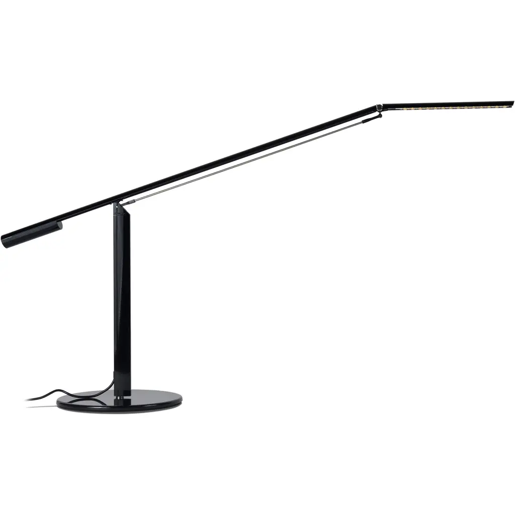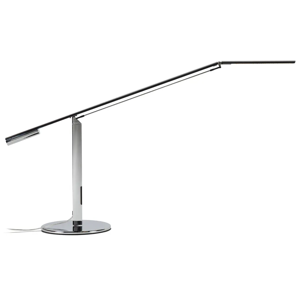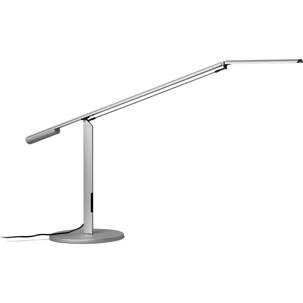 The Koncept Equo Gen 3 Desk Lamp features a discreet counterweight design for feather-light adjustability. The special neck joint maintains the head's tilt as the arm swings up or down. Slide your finger along the stem's touch strip to control brightness and power. The luminaire head rotates 180 degrees and is detachable for easy replacement.