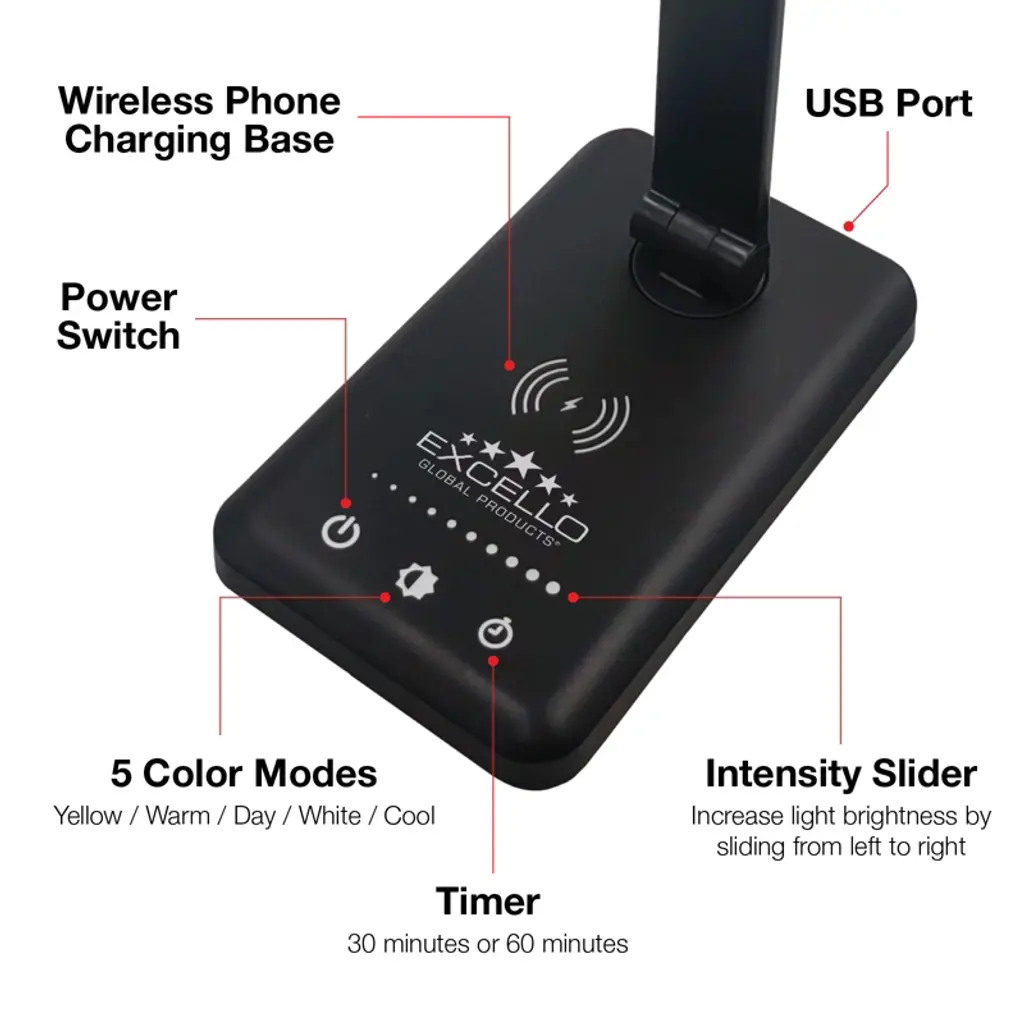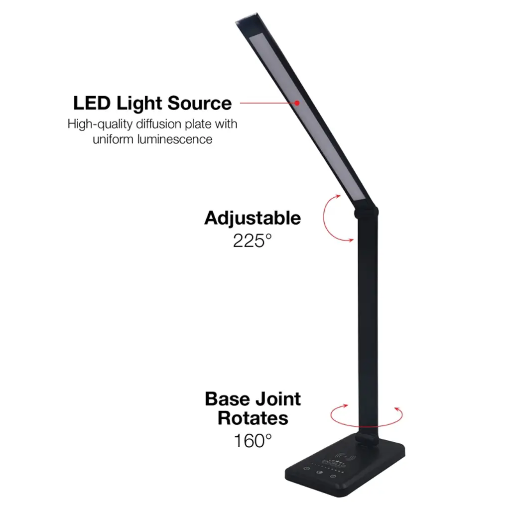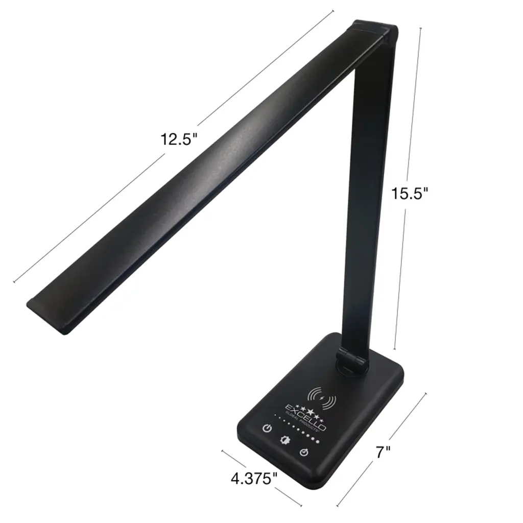 Excello Brands 4-touch Adjustable Led Desk Lamp With Wireless Phone Charging Base, 15.5", Black