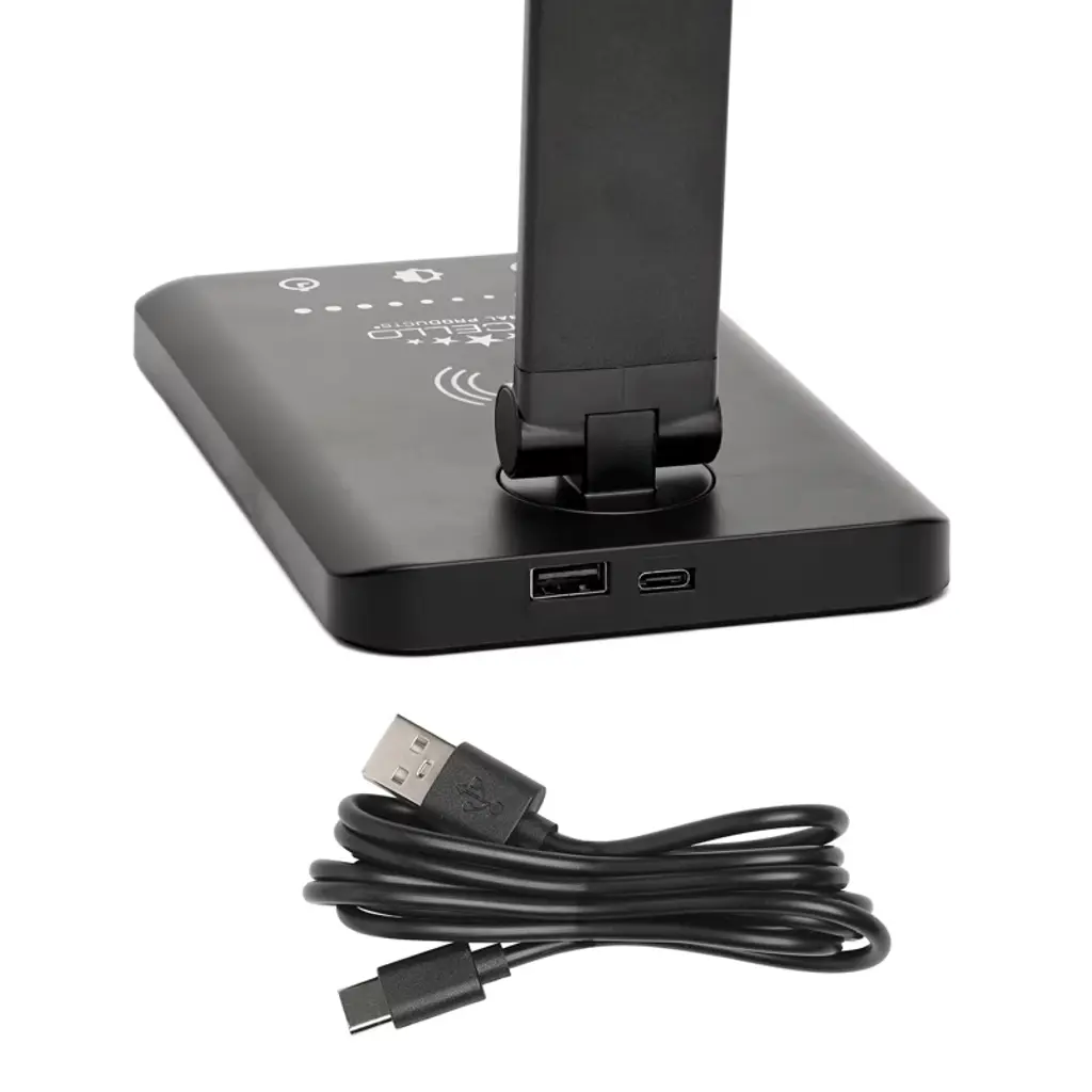 Upgrade your workspace with this sleek adjustable desk lamp, featuring 5 color modes and customizable brightness for optimal lighting. It includes a built-in wireless charging pad, USB-A, and USB-C ports to keep your devices powered while you work. The flexible design allows easy rotation and adjustment, ensuring the perfect angle for reading, studying, or crafting. Stylish and functional, this lamp is a must-have for any home or office.
