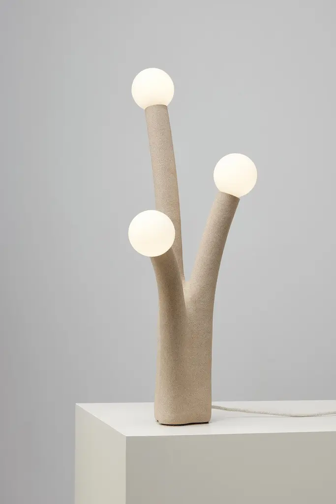 Flower Limited Edition Modern Sand and Nylon Desk Lamp by Hot Wire ExtensionsLimited Edition of 10Dimensions: D 30 x W 28 x H 74 cm Materials: Waste nylon powder, locally sourced beige sand, copper pipe, hand-blown glass bulbs, natural cotton electrical cord.4.5 kgDifferent dimensions, and colors upon request.All our lamps can be wired according to each country. If sold to the USA it will be wired for the USA for instance.Hot Wire Extensions is a young sustainable design brand, presenting a bold innovative manufacturing process.Exploration is central to our philosophy and the Hot Wire Extensions process is conceived with this in mind. Using waste SLS 3D nylon powder, a material that is currently not recycled, and inspired by the way a vine grows around a tree, we reuse the material to create organic bone-like structures built around a wire.We design and develop a diverse range of products, furniture and installations as well as bespoke commissions all characterised by our dedication to the mindful exploration of new material landscapes.