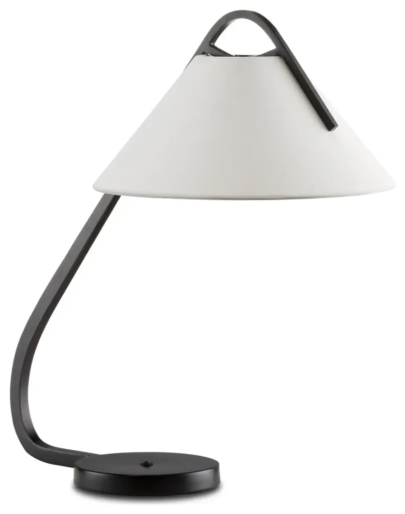 The home office has been given new life during the 21st century, so task lights with high style are in high demand. Ian Thornton had this in mind when he designed the Frey Desk Lamp made of steel in an oil-rubbed bronze finish. The way the off-white shade is fitted to the curving arm is a design detail of note, as it lends the profile a subtle Asian flair. The base has a rocker switch for ease of turning the black desk lamp on and off.Bulbs Included: NBulb Wattage: 40Bulb Type: A StandardNumber of Bulbs: 1UL Listed: YesHardwire or Plug: Plug