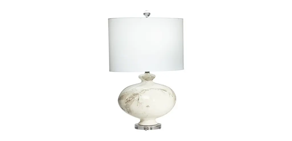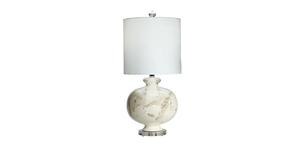 Small in size but big on luxurious detail, our Giovanna desk lamp has a ceramic base, which artisans dip in palladium glaze for a unique faux marble look. Each lamp is crafted by hand, which means no marble pattern will be exactly alike.