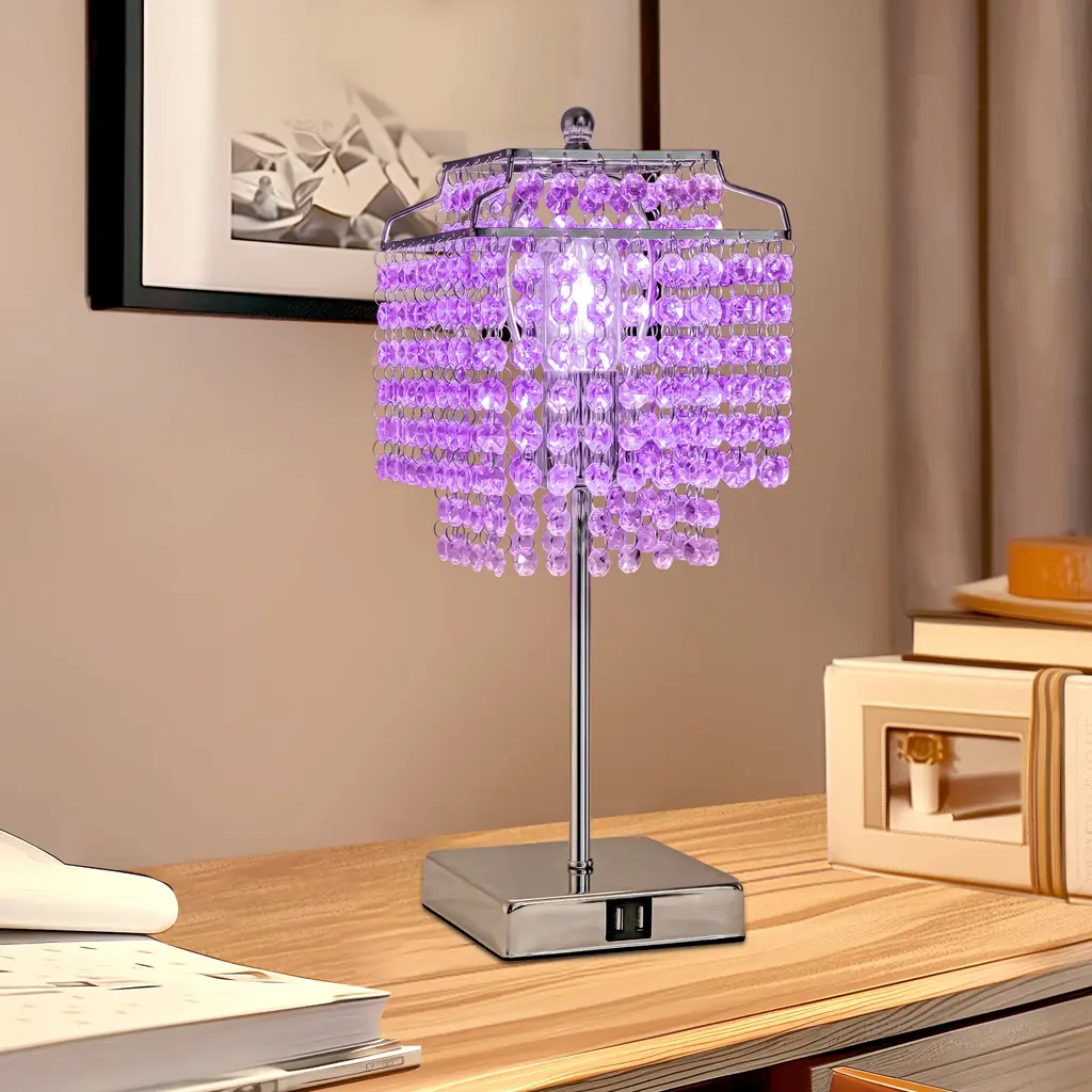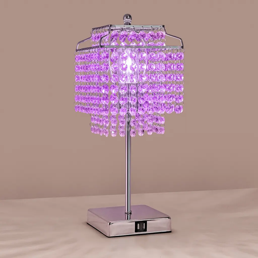 Glass Chrome And Purple Table Lamp Square Shape Dimmable Desk Lamp With No Bulbs Included For Your Bedroom Living Room - 17.32*8.86*5.92 - Chrome&purple