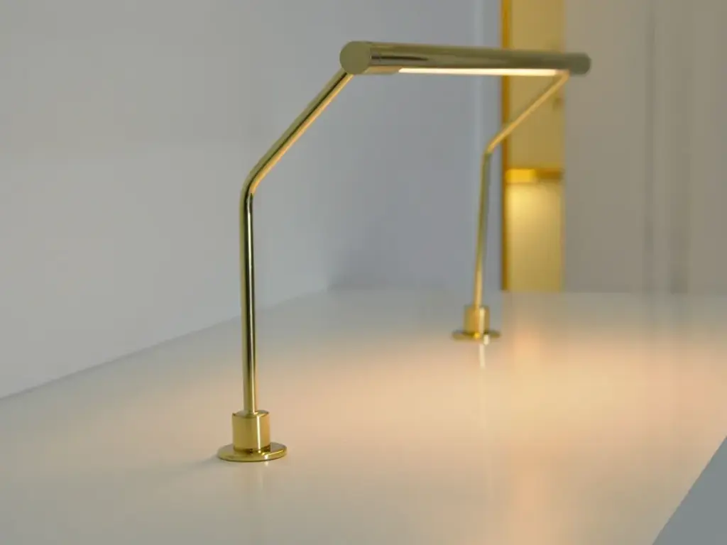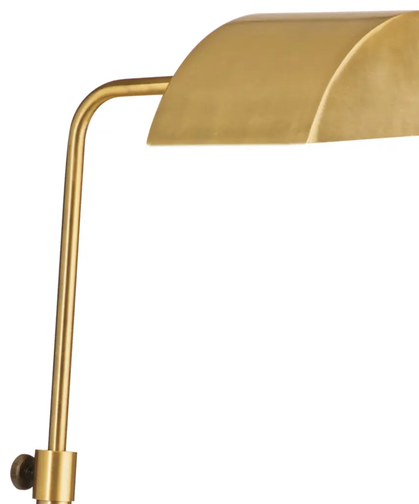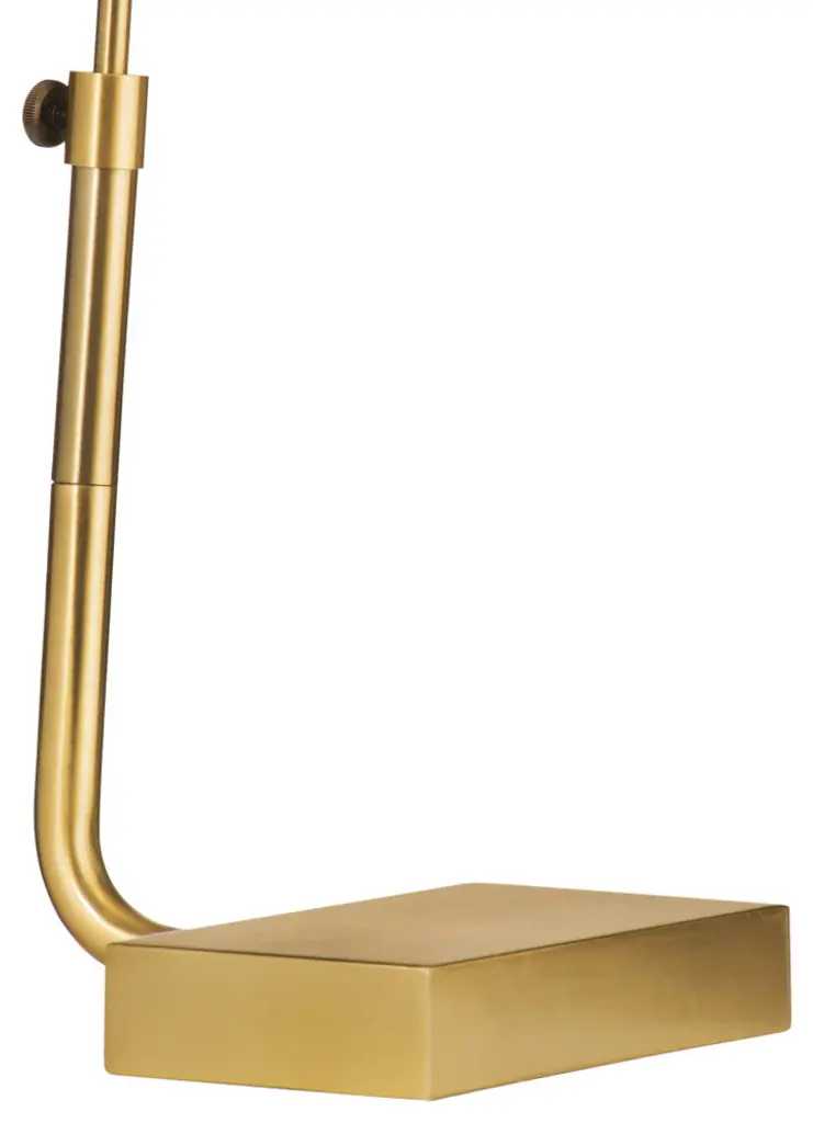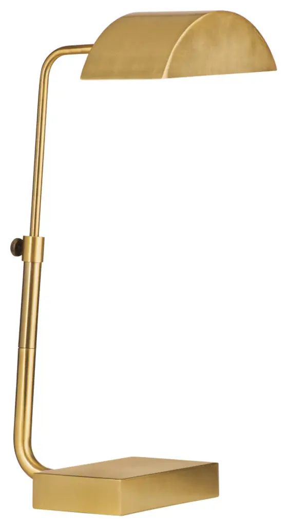 The Golden Desk Lamp showcases a sleek and minimalist design, constructed from brass metal for a touch of understated elegance. Its modern style is characterized by clean lines, a smooth, curved shade, and a sturdy, geometric base. The lamp''s golden hue emits a warm, inviting glow, perfect for contemporary office spaces or as a stylish accent in a modern home interior.Features:Brass metal construction for durability and eleganceModern, minimalist design with clean lines and geometric baseWarm golden hue for a sophisticated and inviting glowBulb type a required, not includedEasy assembly - just attach harp, finial and shadeFor over a century, Bassett Mirror has been synonymous with style and quality, transforming homes with its sophisticated and timeless designs. With a wide-ranging collection of furniture, lighting, mirrors, and art, Bassett Mirror seamlessly blends modern style with classic appeal. From rustic modern to luxe glam, each piece is thoughtfully crafted to inspire and elevate any space. Committed to exceptional value and customer care, Bassett Mirror makes it easy for homeowners to create beautiful, personalized interiors with confidence.