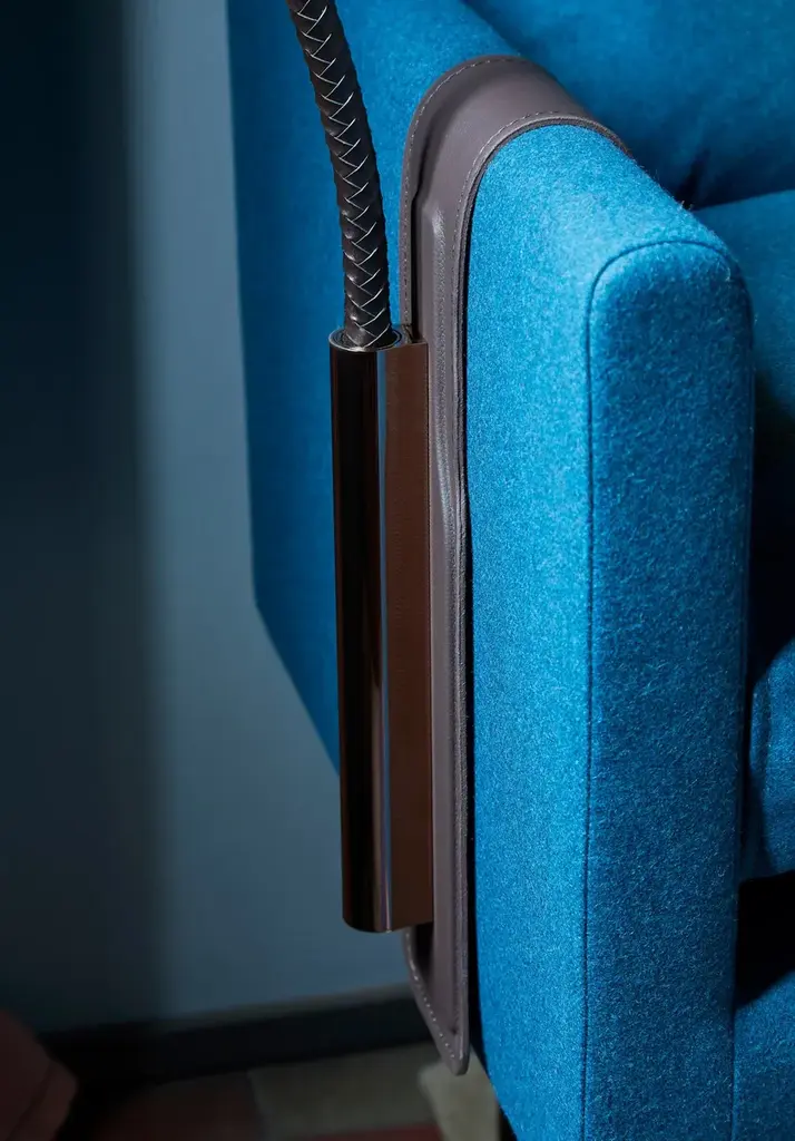 G+T Battery is a LED desk lamp with USB charging.Light source:1 X 2WCustom LEDLight Emission: 500 Lm3.000 K; CRI: >903-level control(100 - 70 - 30%)G+T is an innovative reading lamp, born from the idea of a portable and luxurious product to meet specific space and installation needs; this makes it suitable for contexts such as yachts and superyachts, historic buildings, or exclusive boutique stores. The head recalls a cocktail jigger (as the name G+T, or gin & tonic, suggests), and the arm is in brass covered with braided leather.Available in the battery version with a magnetic connection, or wall-mounted. The battery-powered model is rechargeable via the USB Type-C port (which in the wired version is used for charging smartphones or tablets). The control (with three intensity levels) is conveniently positioned on the head. The battery-powered version comes with the following accessories: a wall-mounted bracket, a bracket for table fixing, and a leather pocket with counterweight for an armchair/sofa armrest.Now also available in the reading and sospension version.