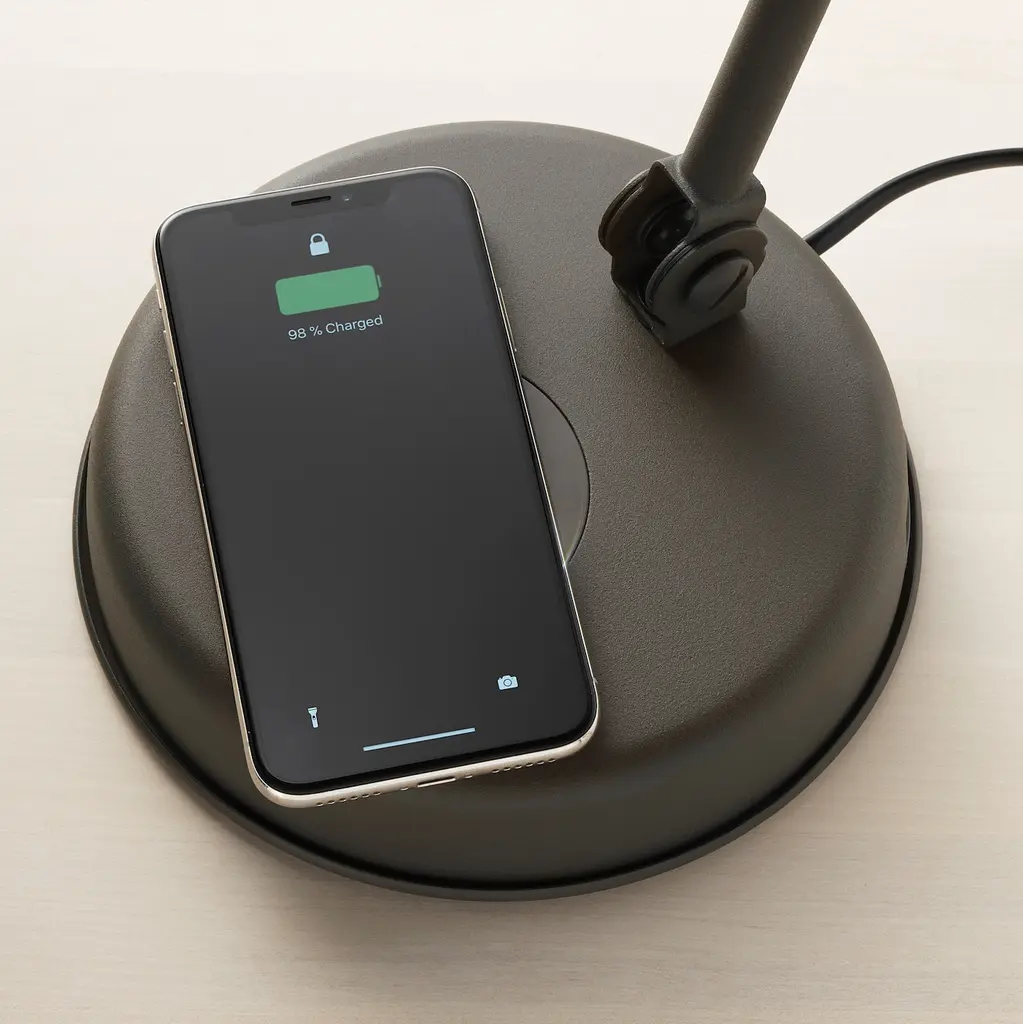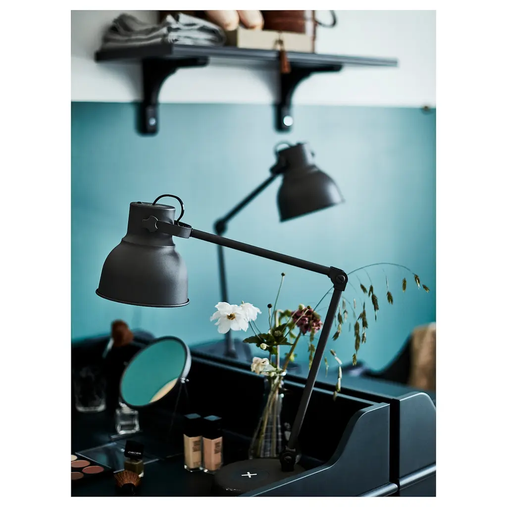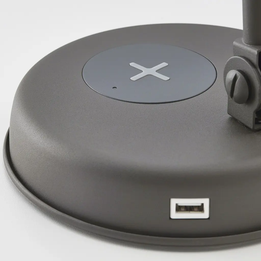 HEKTAR Work lamp w/charging+LED bulb - dark gray. You can easily charge your smartphone wirelessly. If your phone supports wireless charging, place it on the built-in charger. You can charge 2 devices at the same time since there is also a USB port built into the lamp. 1 USB port.