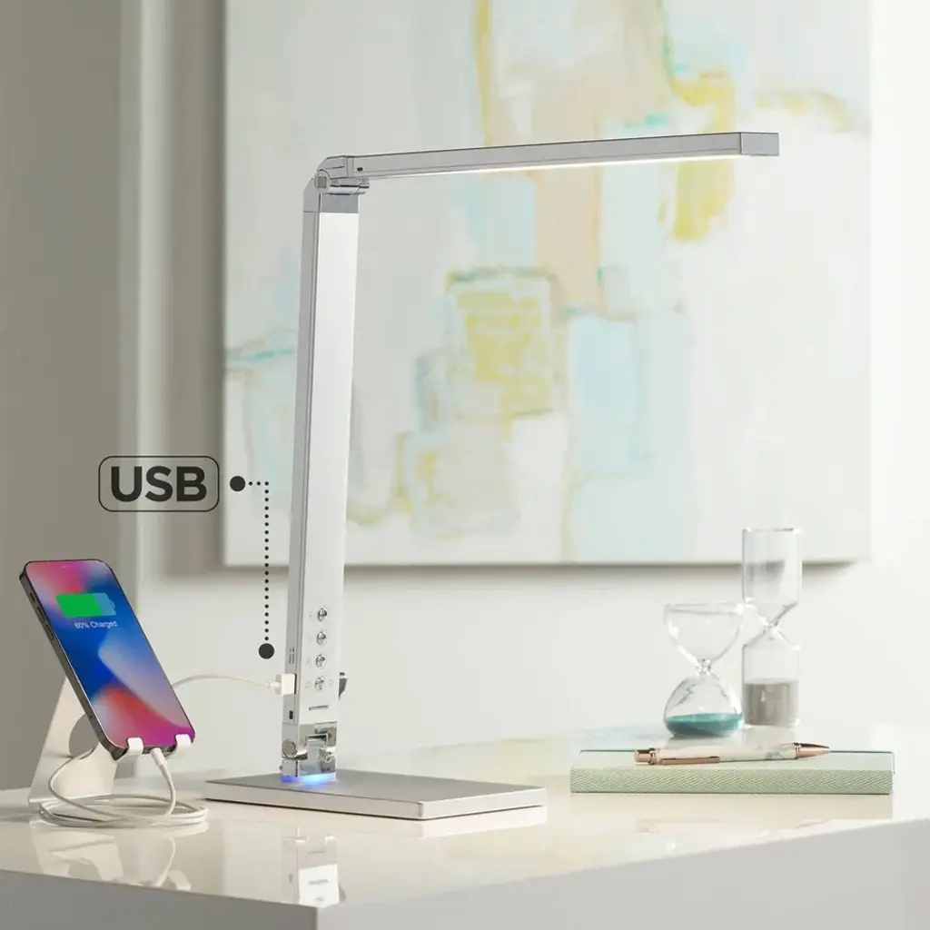 Jett Modern Desk Lamp 16 1/2" High Usb Led Nightlight Silver Touch - 5" X 16.5" - 5" X 16.5" - Silver