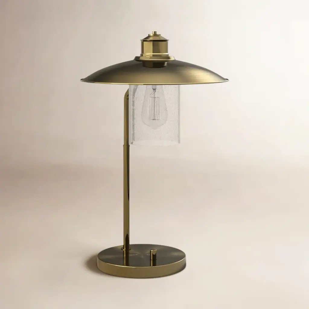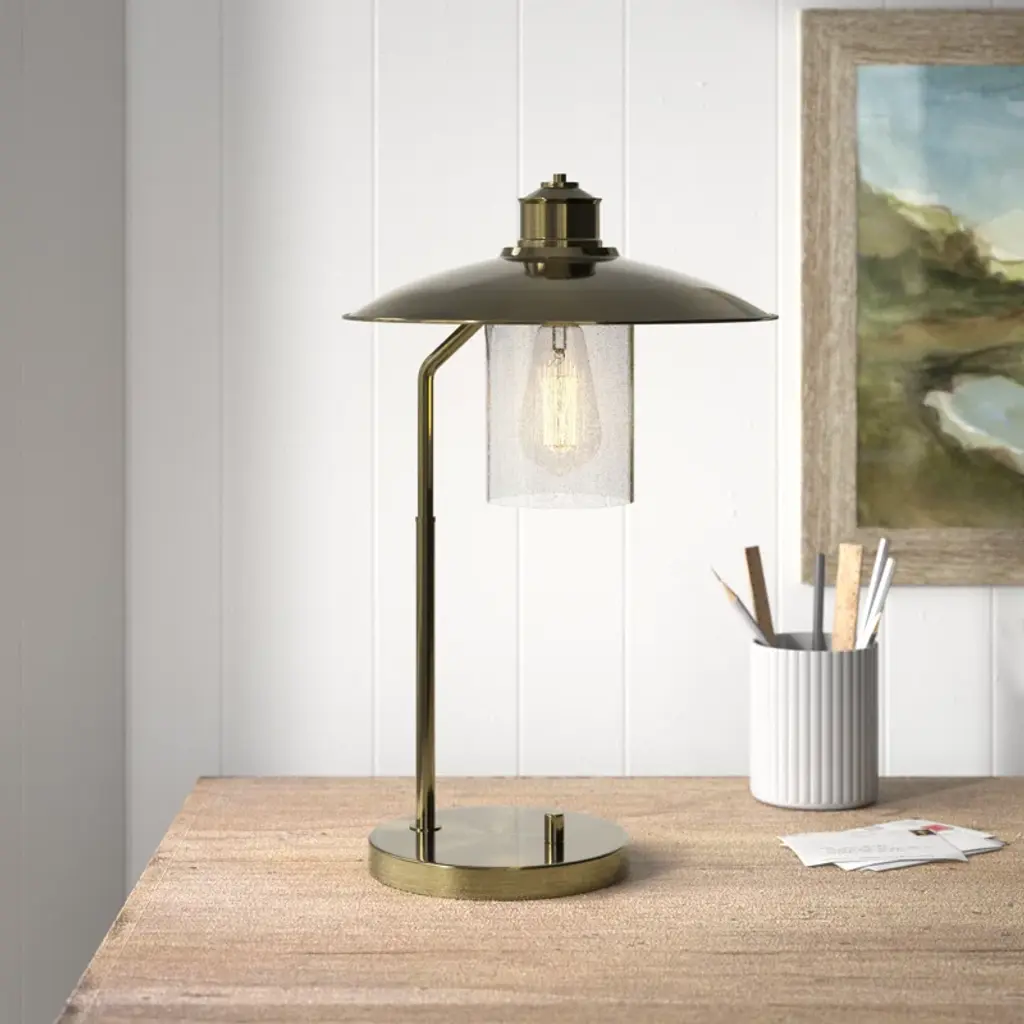 Illuminate your workspace with this elegant desk lamp, featuring a solid brass base and a timeless antique brass finish. The metal shade adds a touch of sophistication, while the clear glass allows the included LED Edison bulb to shine through. Adjust the light direction with ease, thanks to the rotary socket switch. This versatile lamp is designed for both residential and professional settings, making it a fantastic addition to any home office or study. Plus, it's a single set piece, so you can enjoy its warm glow right away.