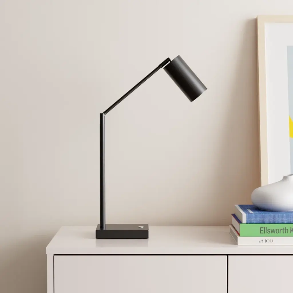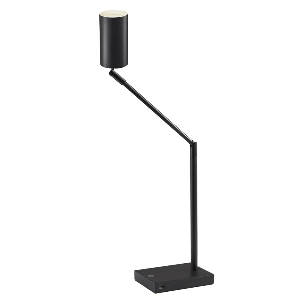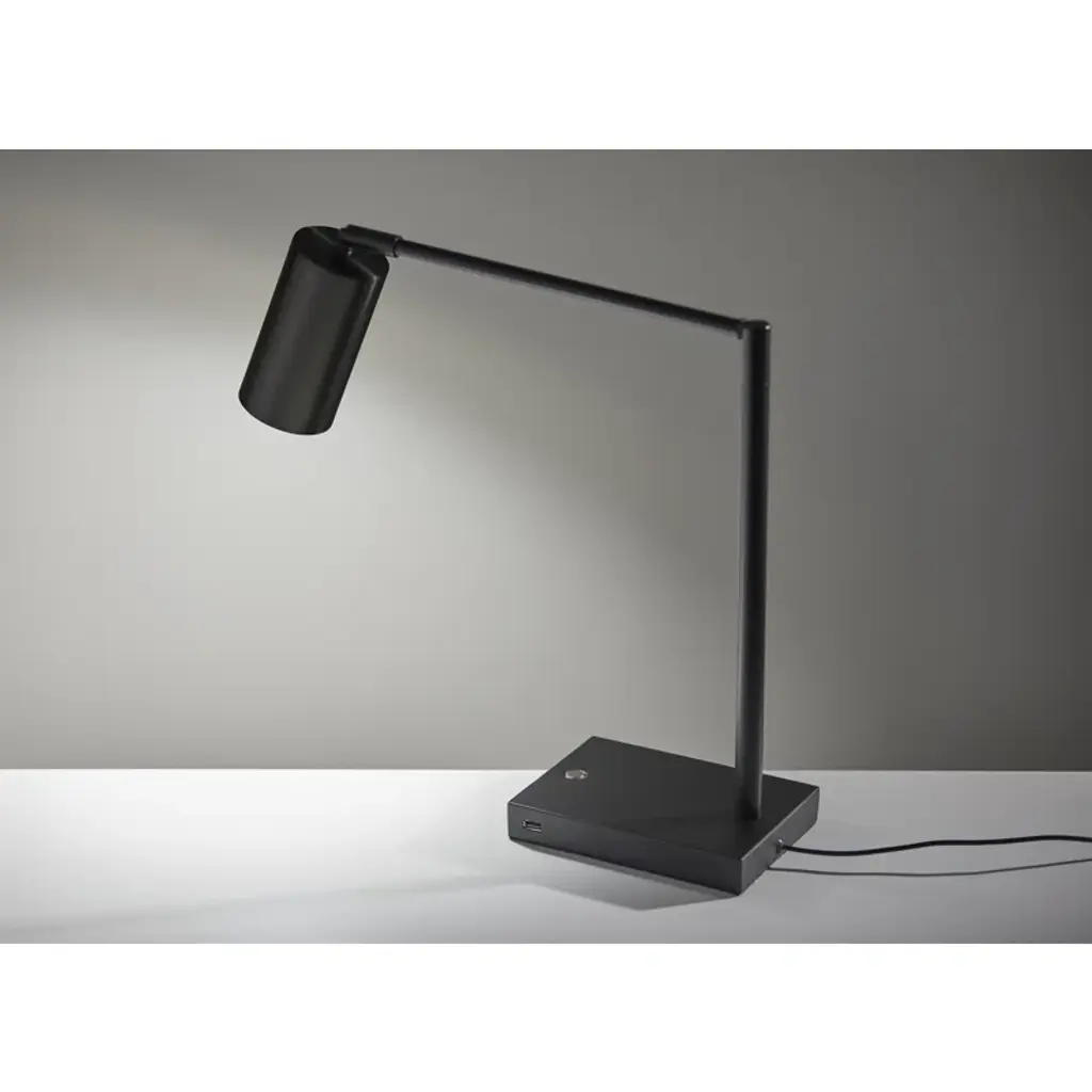 Illuminating simplicity. This desk lamp brings minimalist, modern style to your workspace. Built from metal in a matte black finish, it features an adjustable shade to brighten every corner. Its LED light offers three brightness settings, while a convenient USB port keeps your devices charged up.