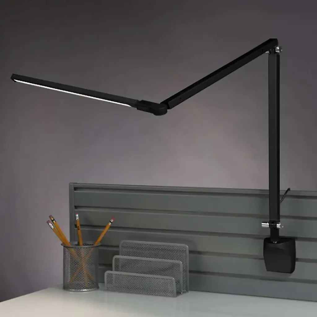 The three-bar design of the Koncept Z-Bar LED Desk Lamp Gen 4 gives it infinite flexibility in contemporary work spaces. The touchstrip dimmer is located near the head for easy access and control of the light's strength. Customize to your needs with options of finish, LED color temperature and mounting.