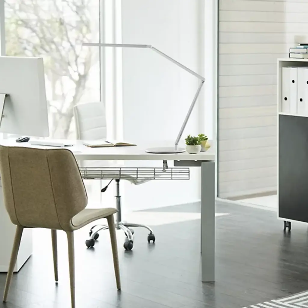 The three-bar design of the Koncept Z-Bar LED Desk Lamp Gen 4 gives it infinite flexibility in contemporary work spaces. The touchstrip dimmer is located near the head for easy access and control of the light's strength. Customize to your needs with options of finish, LED color temperature and mounting.