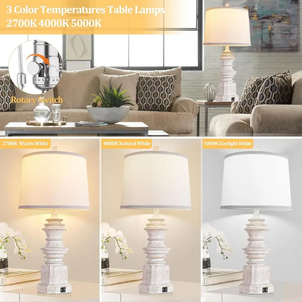 Ktmbdw Traditional Table Lamp Set Of 2, Rustic Farmhouse Table Lamps, 26.5" Bedside Desk Lamps Vintage Nightstand Lamps With Linen Shades, Beige