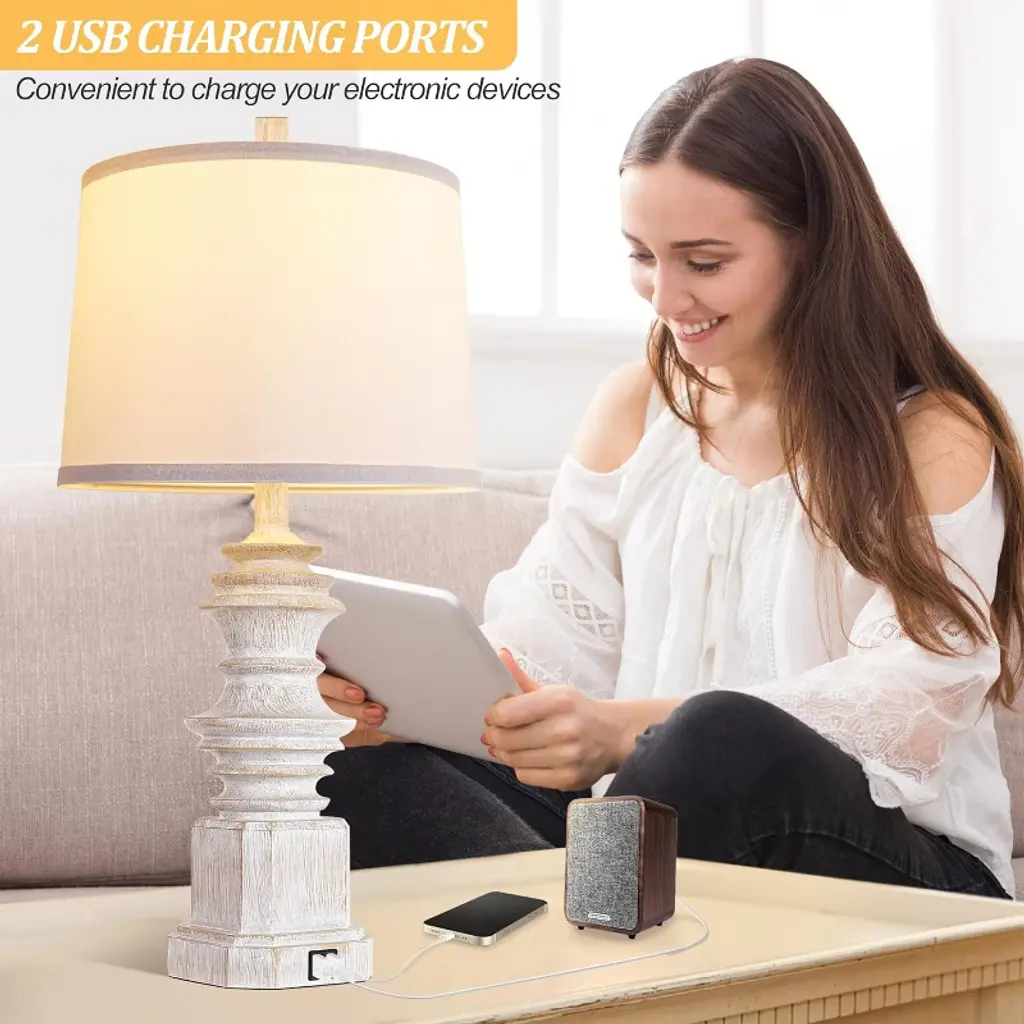 This lamps for nightstand features an antique washed white resin body and a linen fabric shade. The bedside lamps add a touch of elegance and sophistication to any desk or table and create an elegant ambiance for your home. Farmhouse decor with sleek, minimal design is perfect for modern or vintage decor styles.