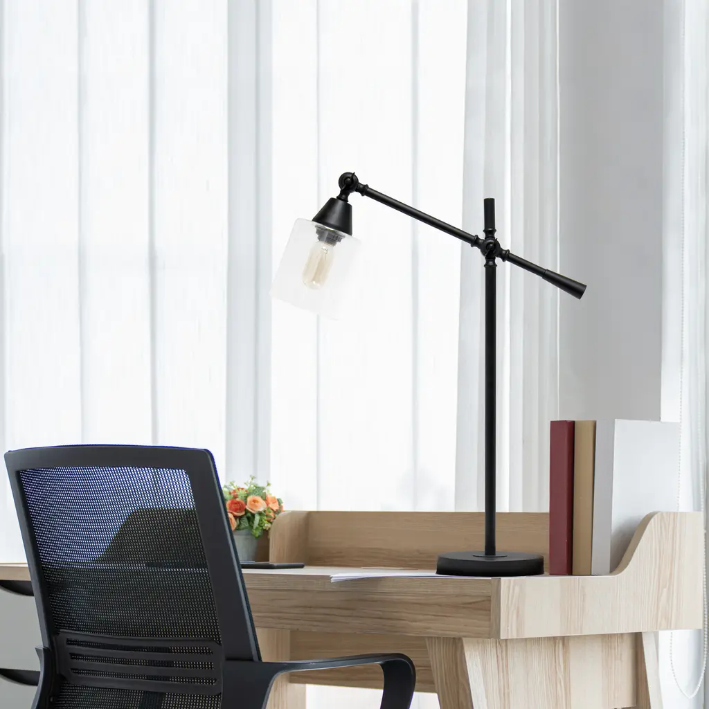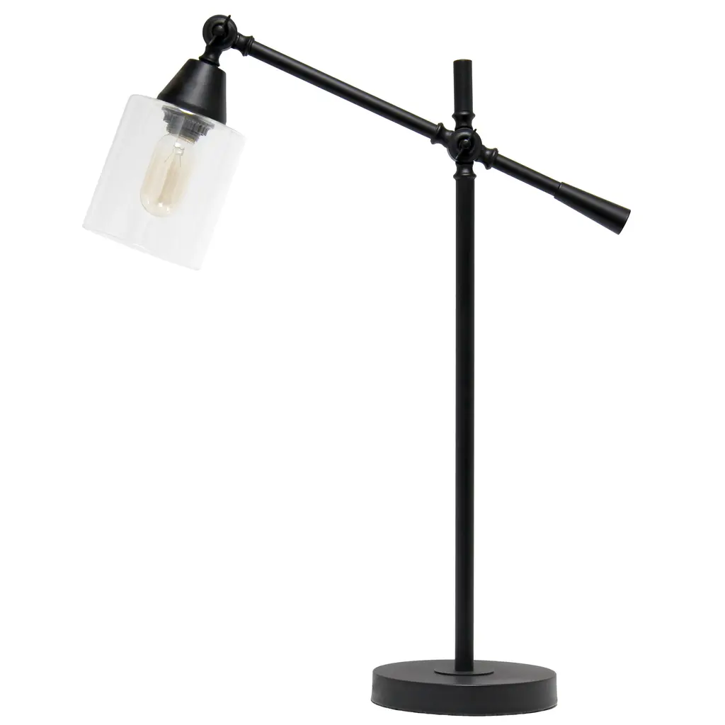 Don't you sometimes wish you can just lower your lamp for a quick read or task you're working on? This desk lamp features a hand lock twist feature that allows you the freedom of doing just that! With a metal base available in a number of finishes, the adjustable level allows you to increase or decrease the height of the lamp as needed. A cylindrical glass shade completes the look for a modern, clean feel. Features: