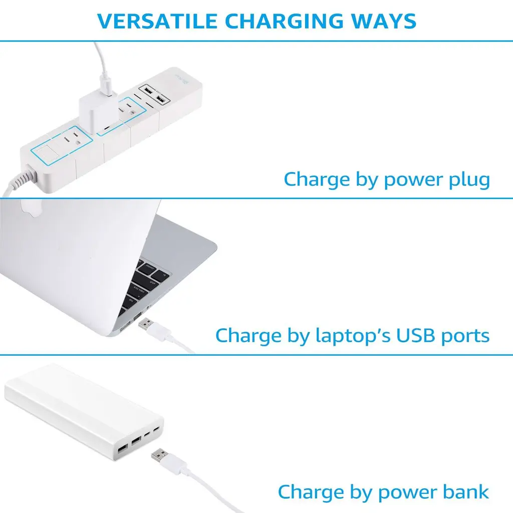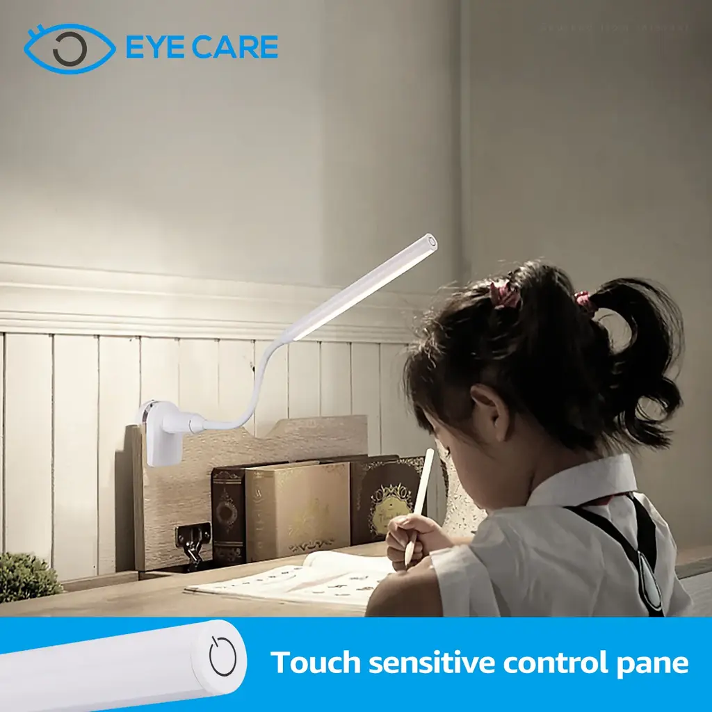 Nice Lighting: The quality integrated LEDs last an estimated 30,000hrs, giving you long-lasting and consistent performance for years to come. This lamp is an energy-saving and efficient choice. Touch-sensitive control 10%-100% stepless dimming.Flexible Design: The lamp’s clamp base design holds firmly and steadily to your bench, table, desk, and even bedframe. It is the ideal space-saving lighting option for use in the dorm, office, and bedroom without taking up too much space.Eye-Caring Design: The neutral eye-friendly white light increases concentration without irritating your eyes, making it the best light for working, studying, and reading. It is the ideal choice for nighttime task lighting without disturbing others.Specifications Wattage: 5W Input voltage: 110V Output voltage: 5V Luminous flux: 590lm Detection angle: 120° CCT: 4000K cool white LED numbers: 26 LEDs Lifespan: 30,000hrs