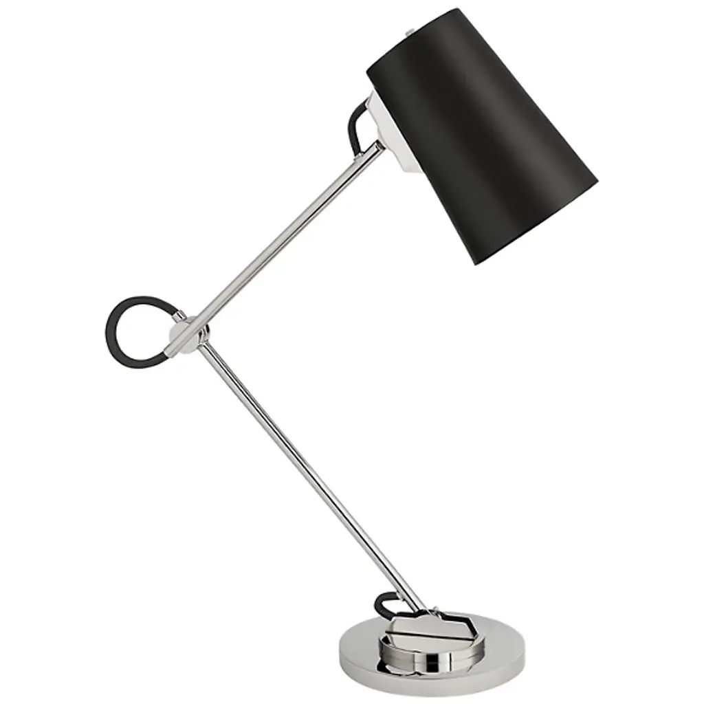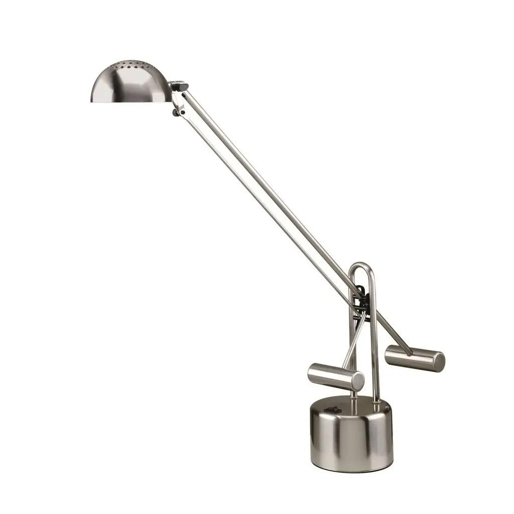 The Halotech Desk Lamp comes in a polished steel finish and a matching shade. This contemporary desk lamp features a counterweight support system for precise placement of illumination for all of your table top tasks.. This Desk Lamp requires one (1) LED 8W bulb (included) and touch dimmer base switch. Number of Light: 1 Light Light Bulb Type: LED Shade Material: Metal Bulb Wattage: 8 W Lighting Type: Desk Lamp Product Features: UL Listed, Bulbs Included Lamp Type: Desk Lamp, Table Lamp Material: Metal Assembly: Assembly Required Lighting Style: Contemporary, Transitional Exact Color: Silver Finish: Steel Finish Color: Silver Dimensions: 29 inches high x 5 inches wide x 29 inches deep