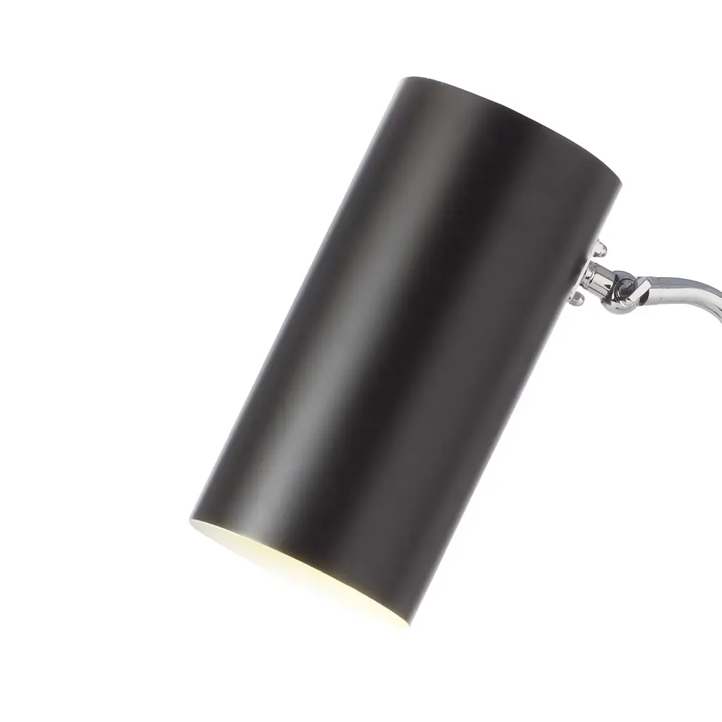 This exquisite desk lamp is made entirely in metal and features a two-color combination that gives it elegance, while its elongated and minimalist structure adds a contemporary allure to it. The cylindrical base and shade are finished with a black varnish that complements the chrome finish of the shaft and the details marking the edges of the base. The result is a modern piece that will be ideal in any setting.