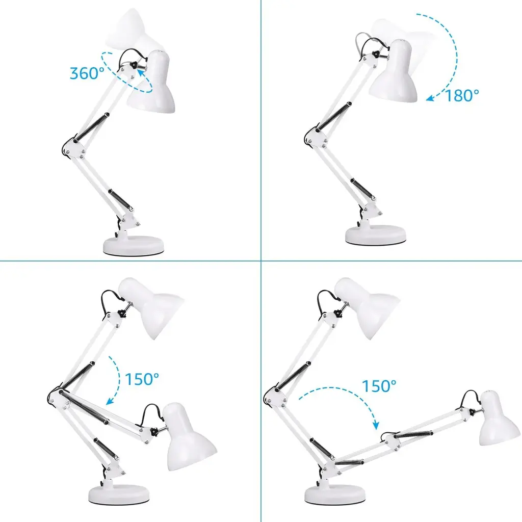 Metal Swing Arm Desk Lamp With Clamp, Architect Adjustable Gooseneck Table Lamp, E26 Base, Multi-Joint - 1Pack - 1Pack