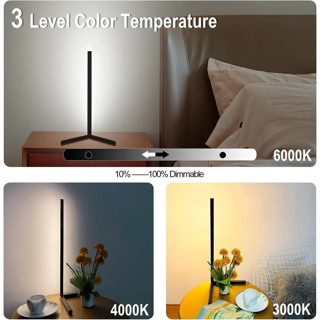 Enhance your space with our versatile corner table lamp featuring premium RGB LED strip for vibrant lighting patterns. Enjoy 3 levels of white light options and RGB light effects, including warm, daylight, and cool white, along with dimmable settings. The minimalist desk lamp supports APP control and remote control. This space-saving lamp also includes a USB power port, making it perfect for gaming setups. Elevate your décor with this stylish and functional night decoration table mood lighting. Suitable for gaming room, study and bedroom.Features: