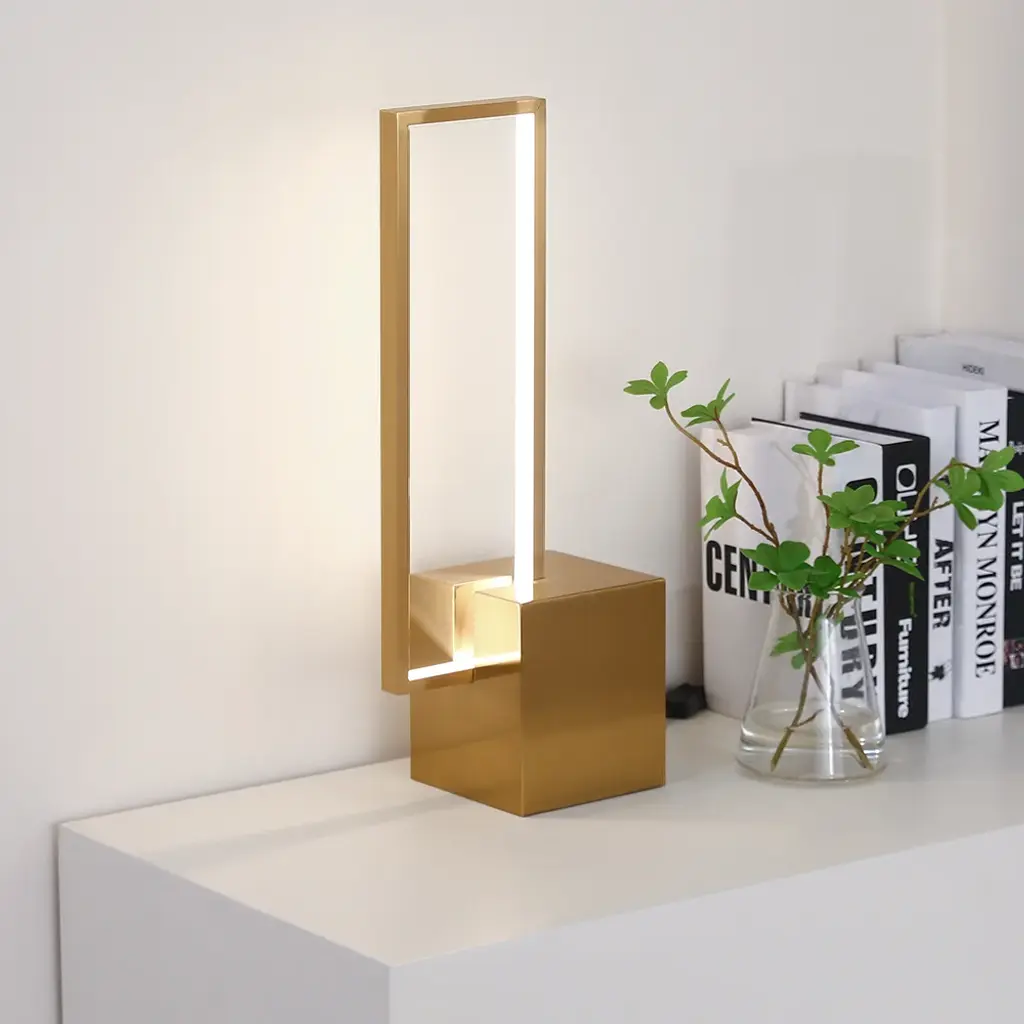 Modern Geometric Table Lamp Gold Desk Lamp With Square Base