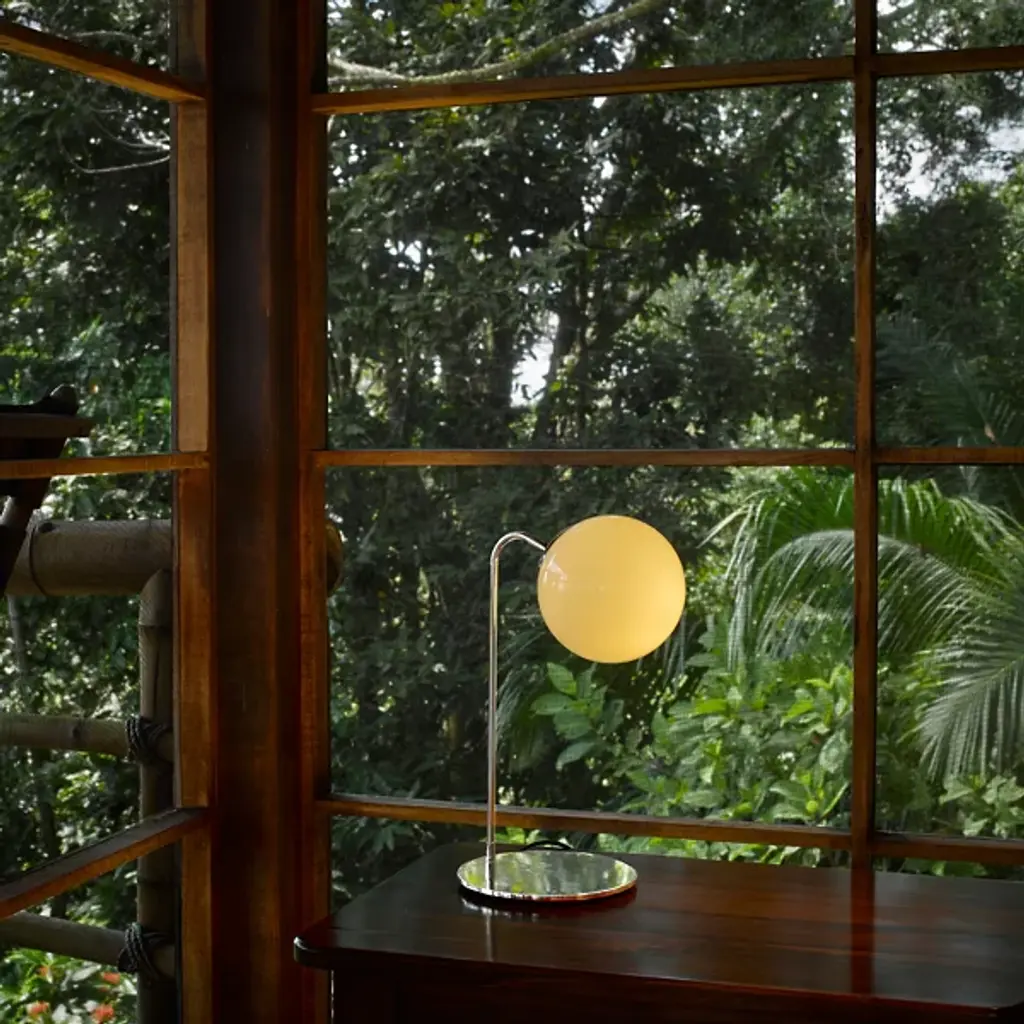 Whimsical and playful, the Modo LED Desk Lamp is a perfect companion for modern living rooms, bedrooms and home offices. Its timeless construction offers practical design with a touch of understated elegance. The integrated LED lamping features a USB plug. Offered in black, bronze, polished nickel and brushed brass finishes with a choice of smoke, clear or cream glass globes. Modo is dimmable with a standard Triac dimmer (sold separately).