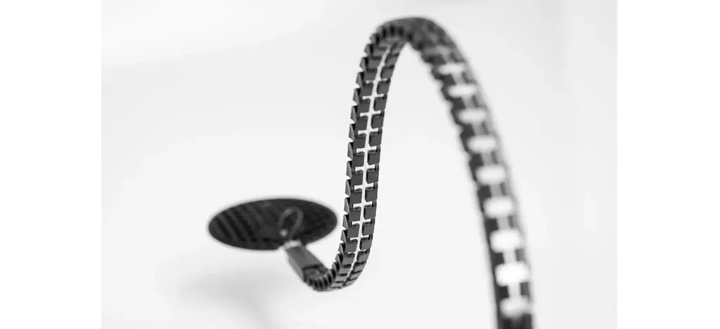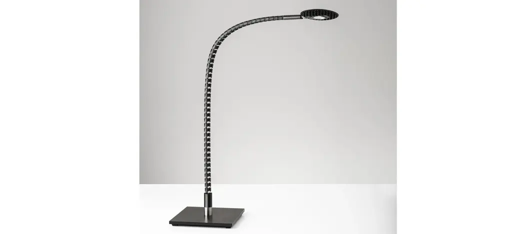 From the designer of ADS360's Kiu Collection, Hans Nopper brings us a brand new, strikingly unique collection of lighting that he calls Natrix. The idea of Natrix was to create a completely flexible luminaire adjustable at any curve. He used high-tech materials and light weight constructions to create a spine-like structure with a smooth, fluid arm movement. A 9 Watt LED light provides 800 lumens of fully dimmable warm light. Intricate design details allow the arm to stay in place wherever you direct it. This sleek, modern design comes in a matte black finish with brushed steel accents on the adjustable arm. A 4.25" round shade made of magnesium alloy does not get hot from this high wattage LED light, finishing off this safe, functional, energy efficient and decorative lamp. Available in a desk lamp, floor lamp and also a clamp lamp version, this design is versatile and a high quality piece of d_cor for your work space or reading area.