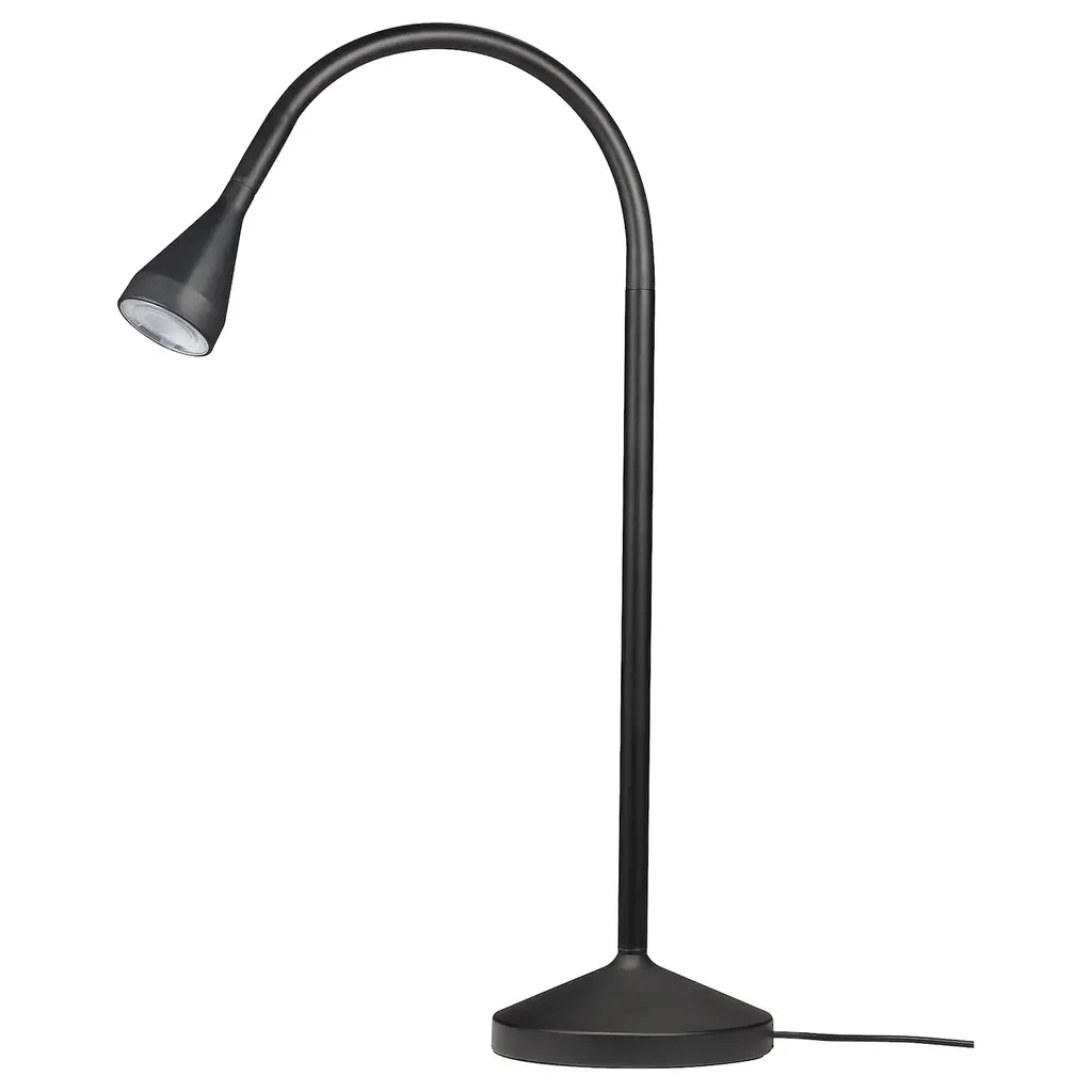 NÄVLINGE LED work lamp - black. Gives directional light that is good for focused lighting. You can easily direct the light where you want it because the lamp arm and head are adjustable. The LED light source consumes up to 85% less energy and lasts 20 times longer than incandescent bulbs.