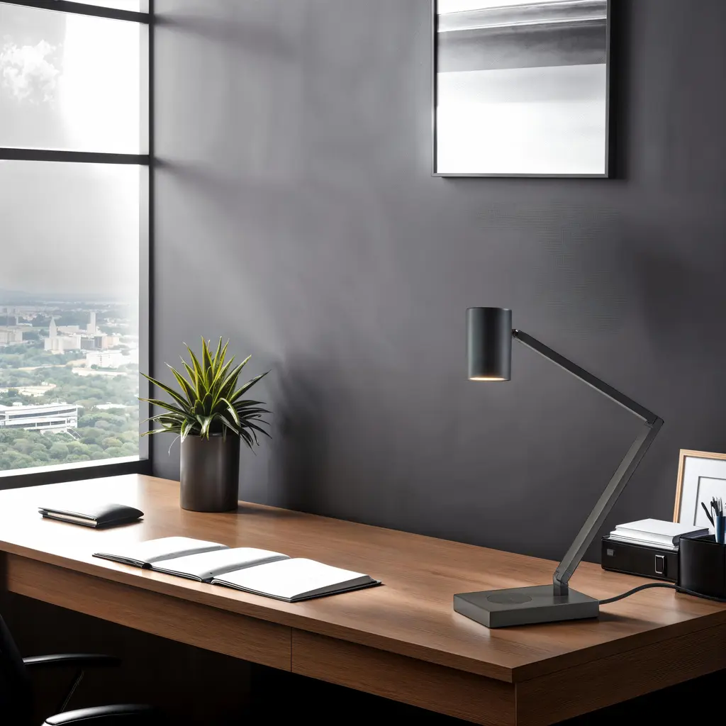 Modern functionality and industrial styling meet in the Newman Task Lamp. This high end desk lamp has a bronze finish and is adjustable at 3 points to direct light exactly where it is needed. A bronze cylinder shade houses an integrated, eco-friendly 10W LED light that is replaceable. With a 4-way touch switch conveniently located on the base, this lamp offers a 3 levels of brightness, making the perfect lighting available at the touch of a finger. For added functionality, the base of the lamp houses an integrated Qi-certified charging pad, supporting 5W charging on contact to get your phone from 0% to 100% in just 3-4 hours. A USB port is also located on the side of the base for charging a second device simultaneously. The lamp is powered by a 5' black fabric covered cord.