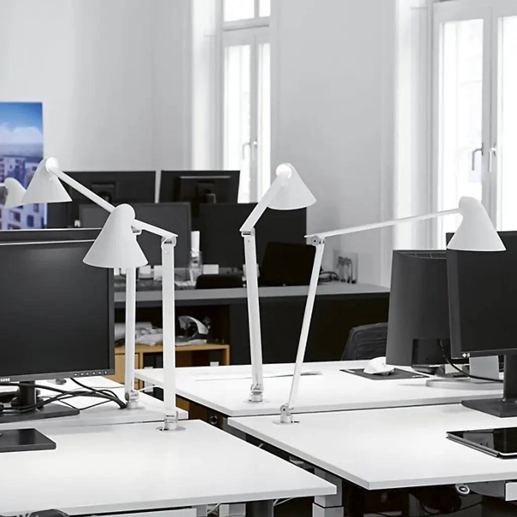The Louis Poulsen NJP LED Task Lamp is a thoughtful approach to work-oriented light, recognizing the need for light to be as intuitive as it is attractive. Designed by Nendo, the NJP is engineered for optimal performance, featuring a beautiful aluminum structure that holds powerful LED technology. Fully adjustable with hi-lo switching, you can choose between warmer or cooler color temperatures, which can then be controlled with a simple touch switch on the shade.