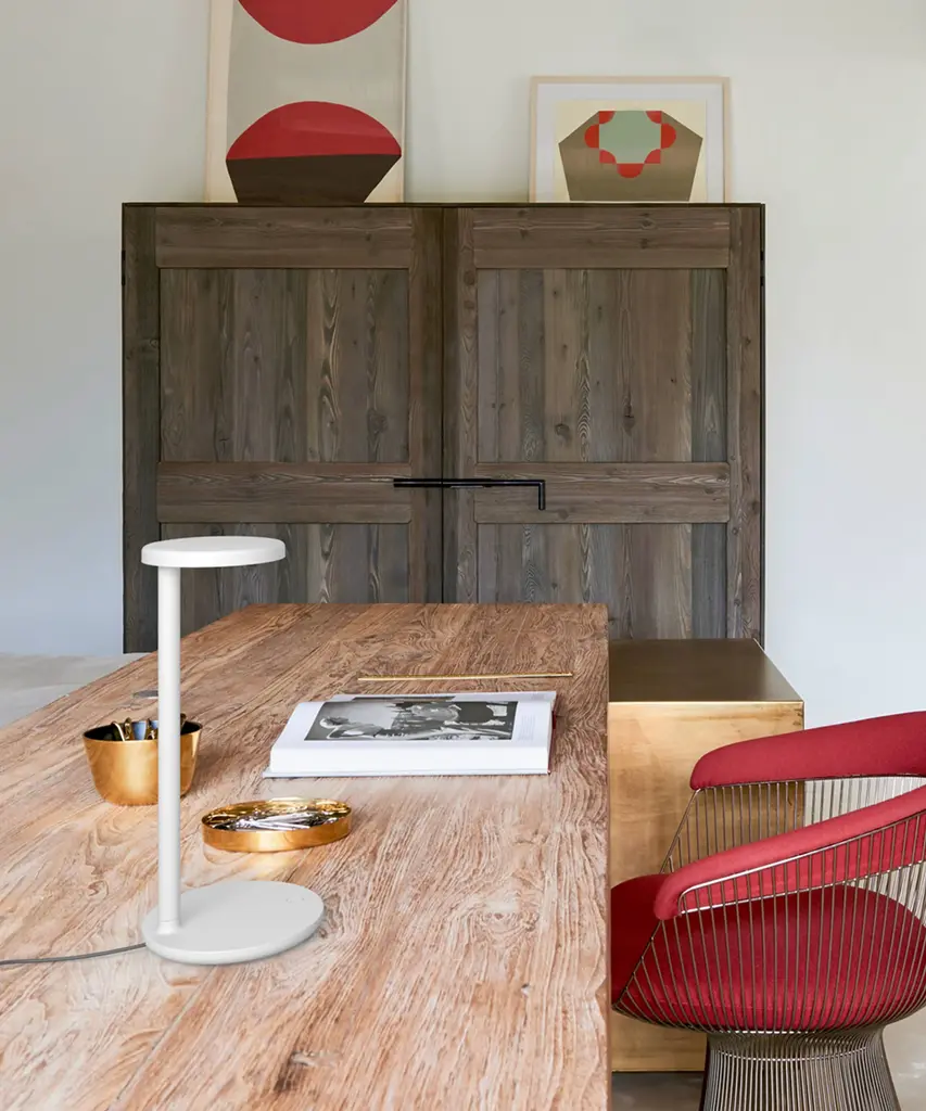 Oblique is the natural evolution of the classic office swing arm model. With its robust, compact structure and minimalist design by Vincent Van Duysen, Oblique produces a patented, powerful, and controlled asymmetric light beam that is optimal for workspaces. Key features an Integrated USB-C port into the base to charge additional devices. Round flat head for minimal visual intrusion A patented ultra-flat lens with a very high efficiency of 97% *Only the Oblique Qi version comes with a built-in wireless charging port at the base. It allows users to charge their smartphones while freeing desks from unsightly wire and cable clutter. This authentic design is produced in Italy exclusively by Flos.