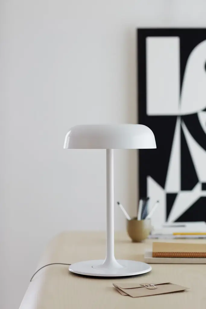 Poetic in its simplicity, elevated in its attention to detail, the Ode Lamp (2016) shines a light on the moments we spend together. It features a spun-steel shade and anti-glare LEDs to create a pool of diffused illumination, appealing to our instincts to come together around light. Touch the base or stem once for full power, twice for 50 percent, and thrice for off. Bulb (included): LED array. UL Listed.