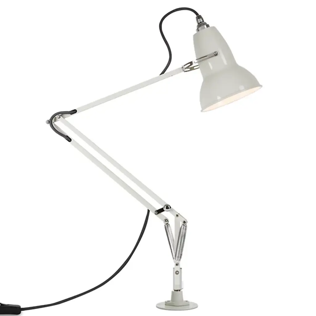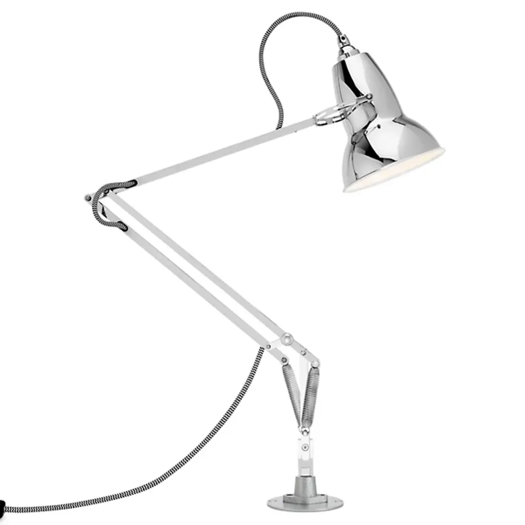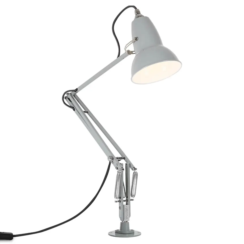 The Anglepoise Original 1227 Desk Lamp with Insert provides plenty of space-saving functionality, featuring a low-profile insert-mounting system, flexible joints, and an adjustable Aluminum shade. Its Constant Tension Spring technology allows for easy and sustainable customization, ensuring that the light is positioned exactly where you need it to be. Sleek metal detailing gives this piece a contemporary shine, including Aluminum arms, Chrome plate fittings, and a Cast Iron desk insert.