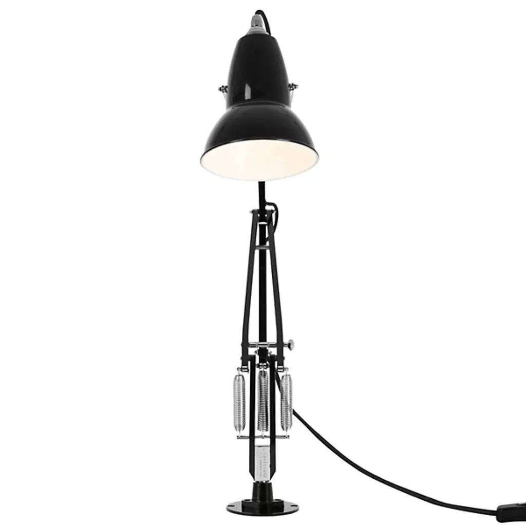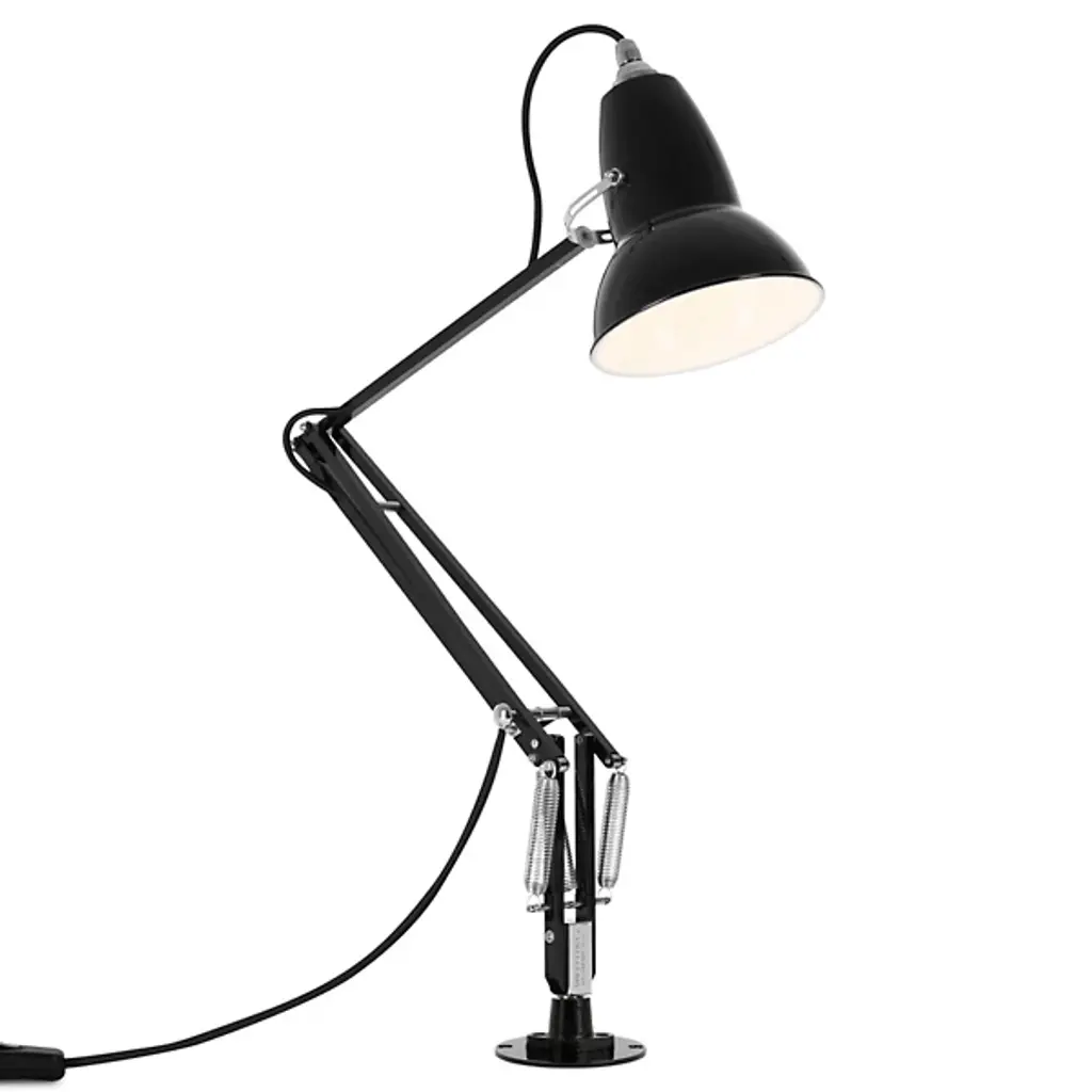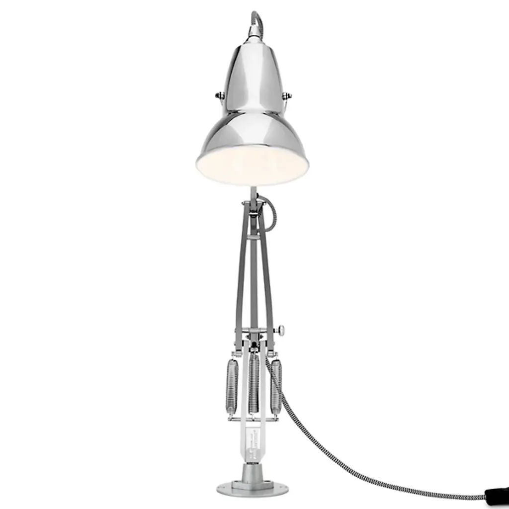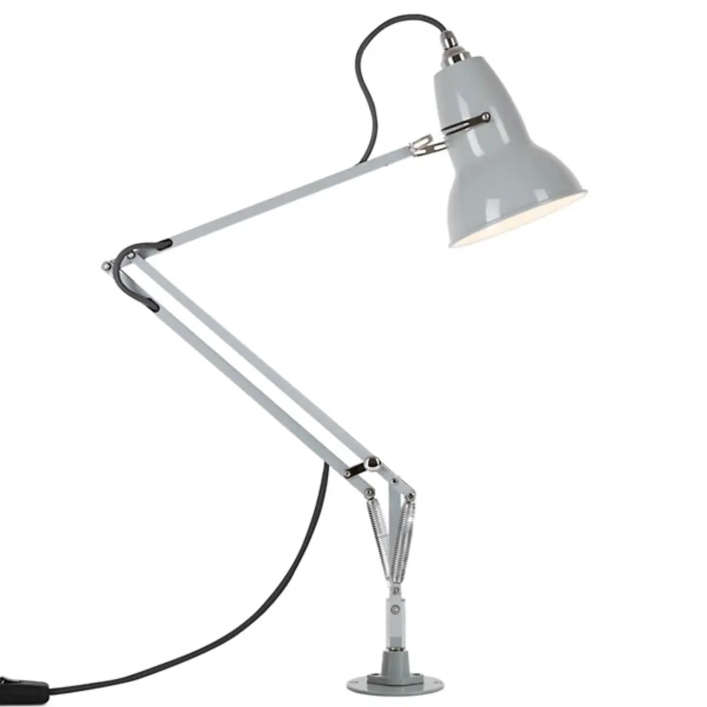 The Anglepoise Original 1227 Desk Lamp with Insert provides plenty of space-saving functionality, featuring a low-profile insert-mounting system, flexible joints, and an adjustable Aluminum shade. Its Constant Tension Spring technology allows for easy and sustainable customization, ensuring that the light is positioned exactly where you need it to be. Sleek metal detailing gives this piece a contemporary shine, including Aluminum arms, Chrome plate fittings, and a Cast Iron desk insert.