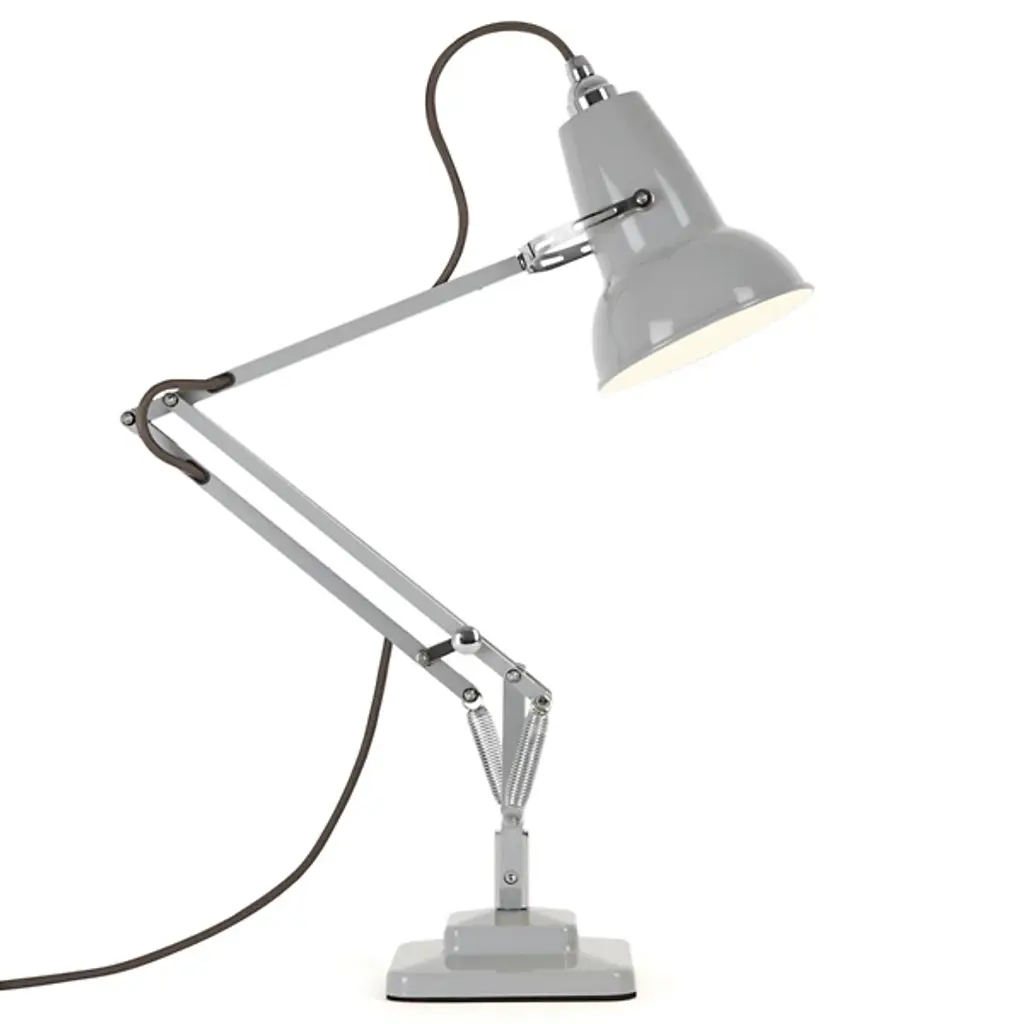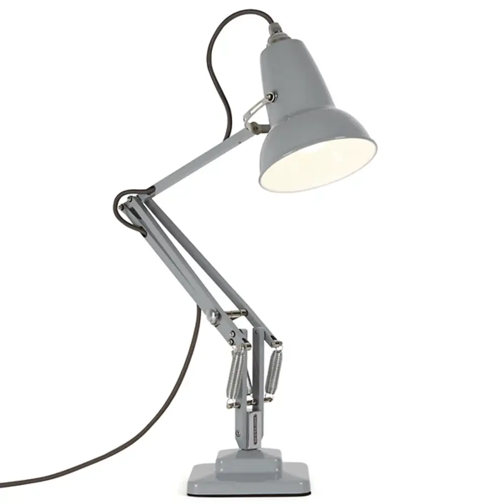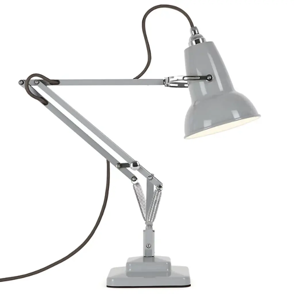 Slightly smaller with the same mechanical precision of the original, the Anglepoise Original 1227 Mini Desk Lamp is as iconic as it is space-saving. The celebrated aluminum shade and jointed frame are resized for convenience, adapting the task light for interiors with limited room. The three-spring technology patented in 1934 remains the same, allowing the fixture to easily adjust while maintaining structural integrity.