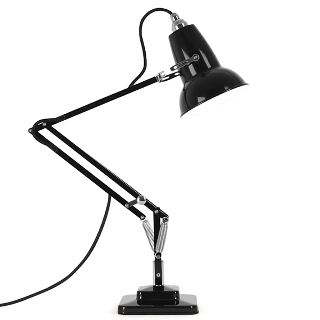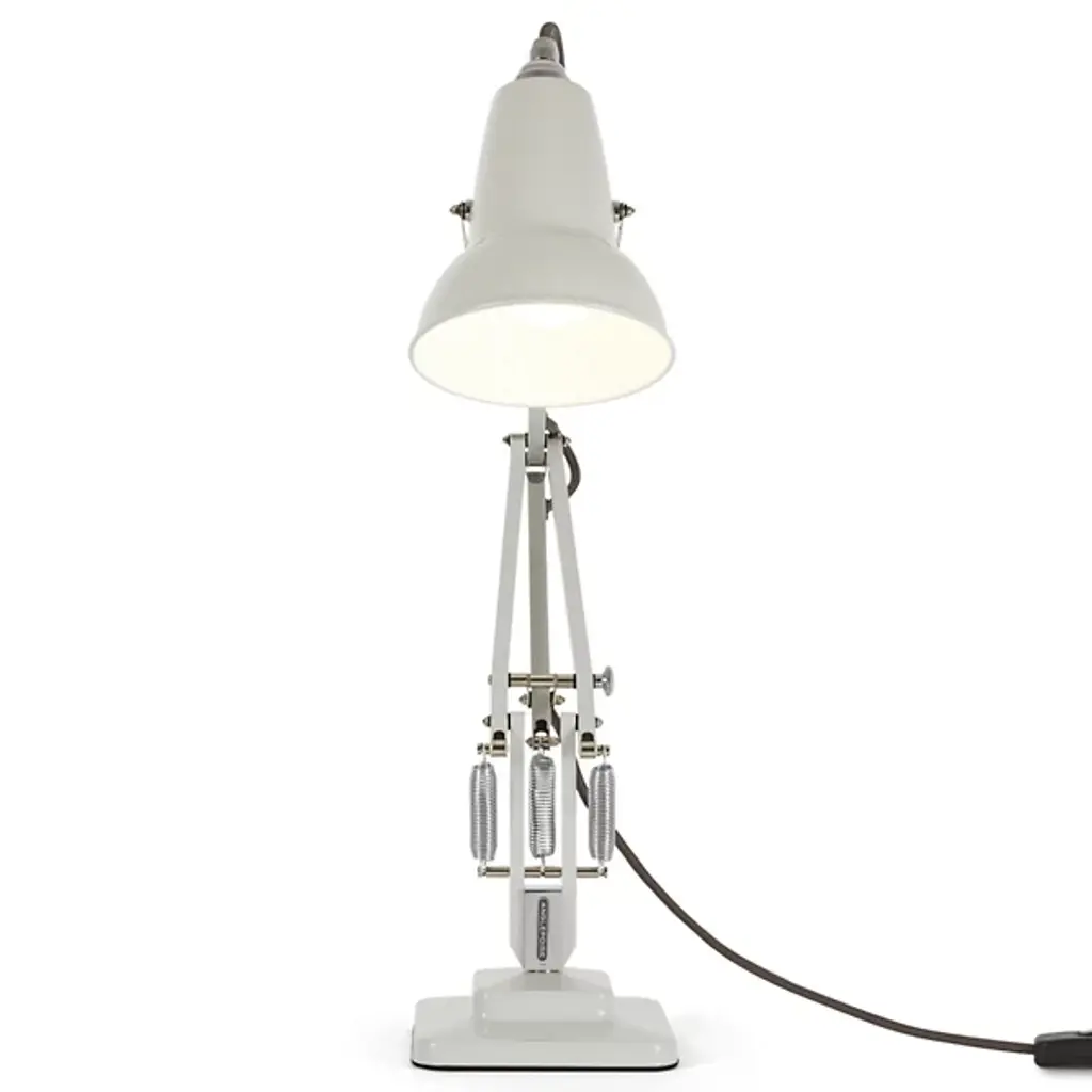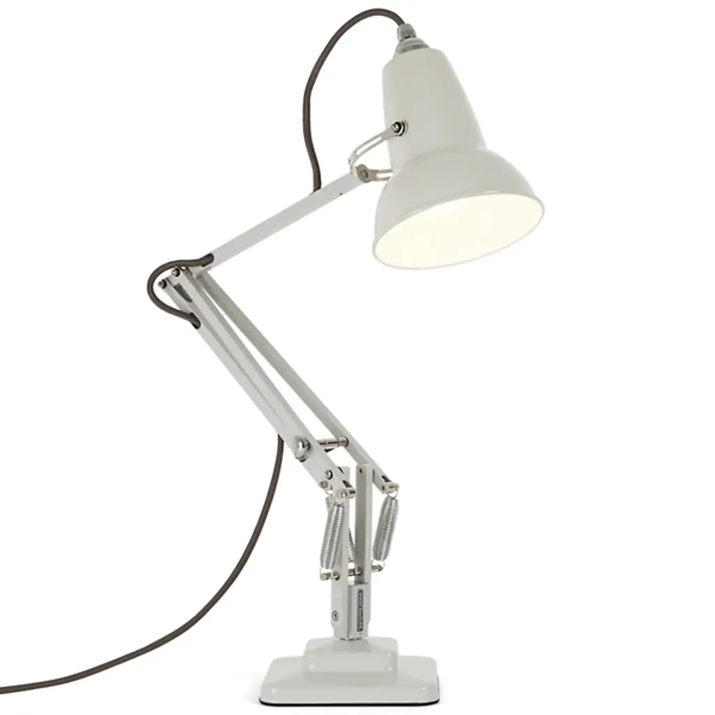Slightly smaller with the same mechanical precision of the original, the Anglepoise Original 1227 Mini Desk Lamp is as iconic as it is space-saving. The celebrated aluminum shade and jointed frame are resized for convenience, adapting the task light for interiors with limited room. The three-spring technology patented in 1934 remains the same, allowing the fixture to easily adjust while maintaining structural integrity.