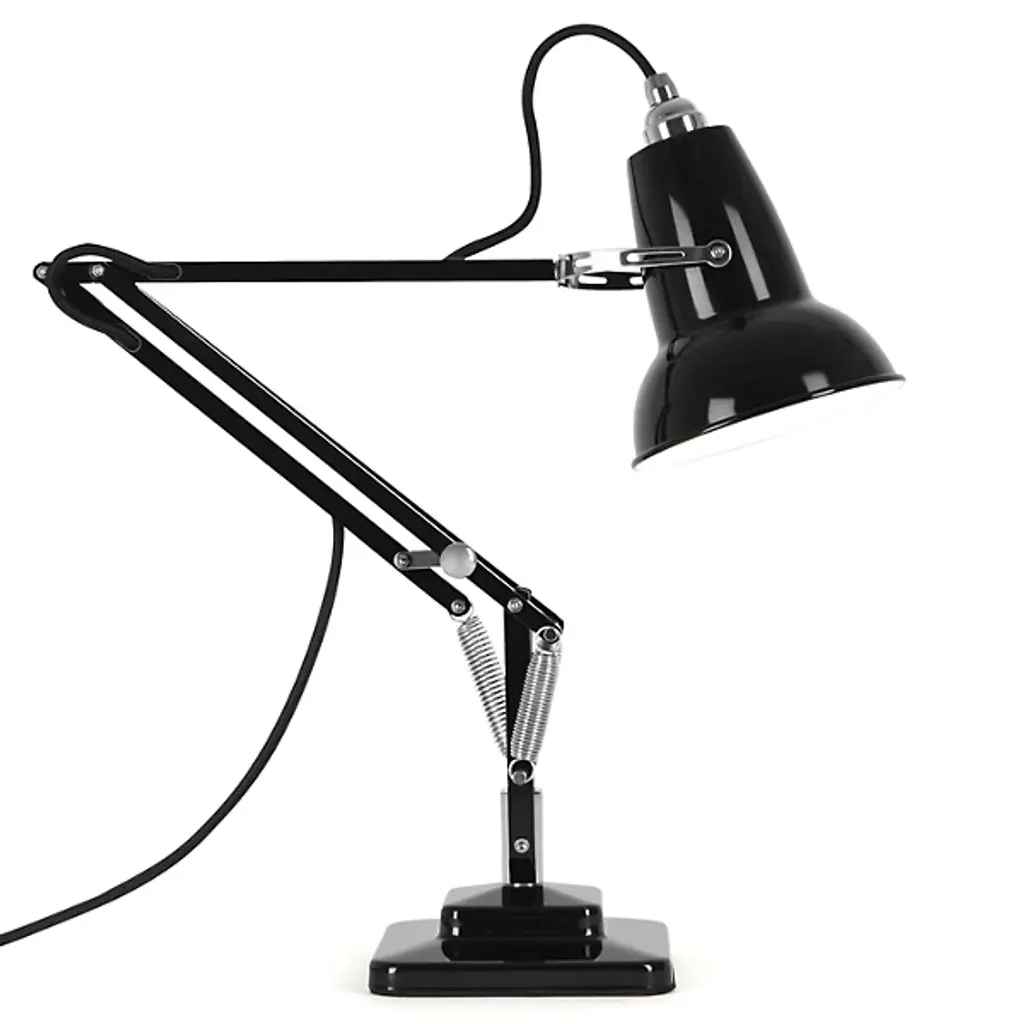 Slightly smaller with the same mechanical precision of the original, the Anglepoise Original 1227 Mini Desk Lamp is as iconic as it is space-saving. The celebrated aluminum shade and jointed frame are resized for convenience, adapting the task light for interiors with limited room. The three-spring technology patented in 1934 remains the same, allowing the fixture to easily adjust while maintaining structural integrity.