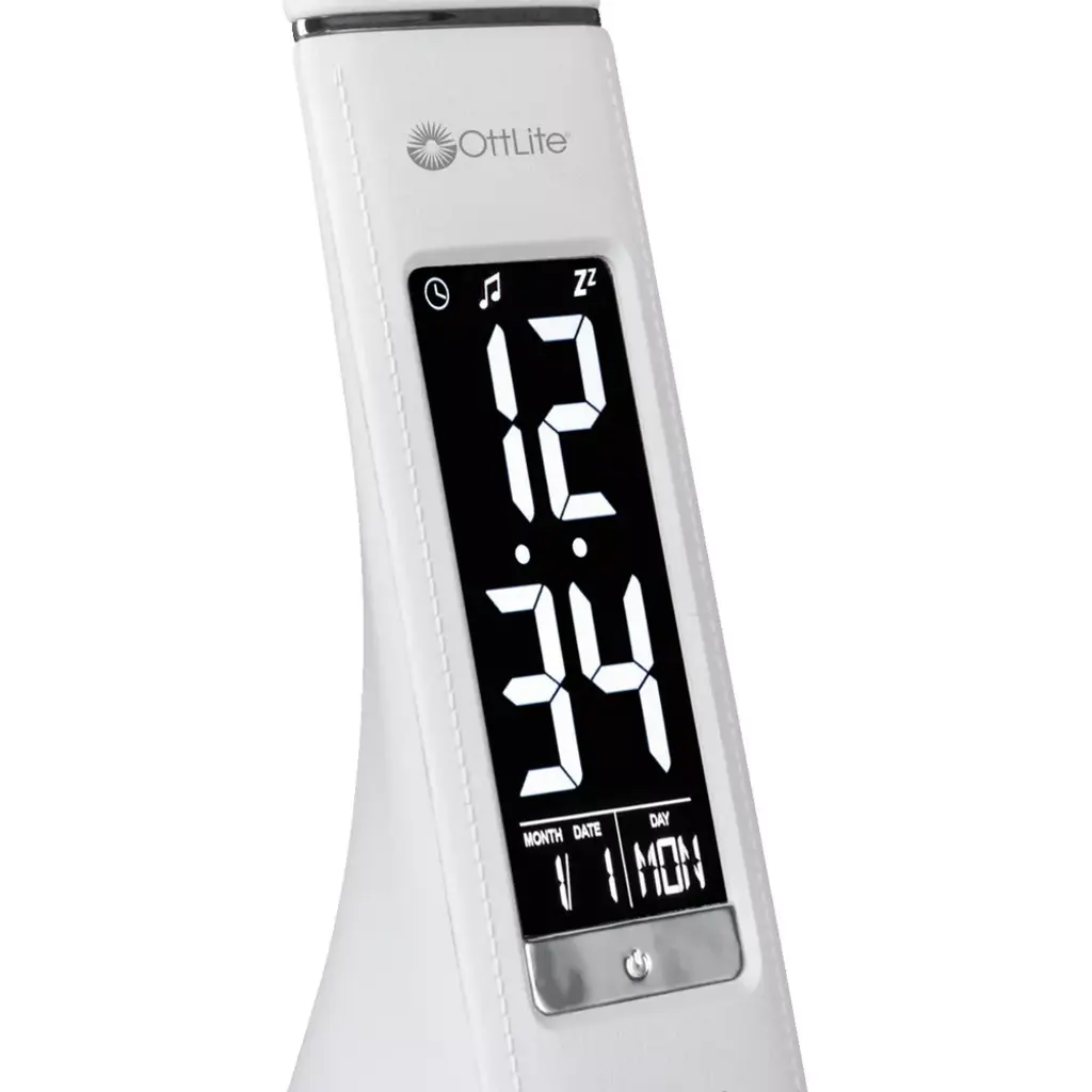 Ottlite Thrive Sanitizing Desk Lamp With Clock And Usb Charging White (Includes Led Light Bulb): Modern Study Lamp, Etl Listed, Touch Sensor