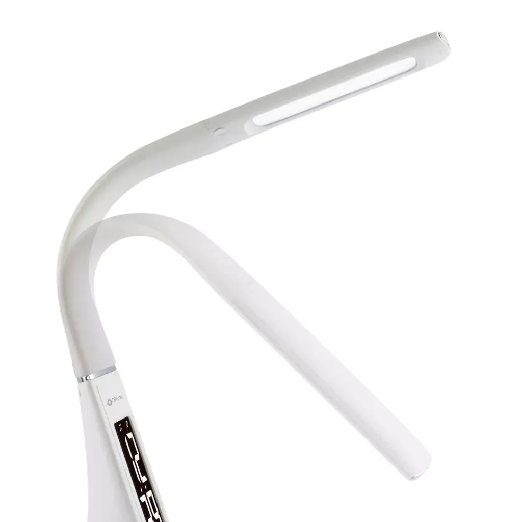 OttLite brings you the only desk lamps designed to break down harmful microorganisms. Now you can have proven sanitizing power right at your desktop with SpectraClean™ visible light disinfection. Using a precise formulation, SpectraClean’s patented technology has been shown to kill potentially harmful bacteria like those prevalent on mobile phones and desktops. Create a healthier workspace every time you turn on your light! The OttLite Thrive LED Sanitizing Desk Lamp with USB Charging also features the eyestrain-reducing power of ClearSun® LED technology – shown to reduce eyestrain by up to 51%. This exclusive low glare, high contrast illumination is as close to natural daylight as you can get and has a superior color rendering index of 95+. Customize your lighting experience with three brightness settings and choice of modes including ClearSun Only, ClearSun + SpectraClean, SpectraClean Only. This lamp adjusts from 10 to 18.75 inches and holds position with the sleek flexible neck. Keep your mobile phone and tablet charged with the convenient USB port (5V, 2.1A). Plus you’ll stay on track with the alarm feature and smart digital display that shows date, day of the week and time.
