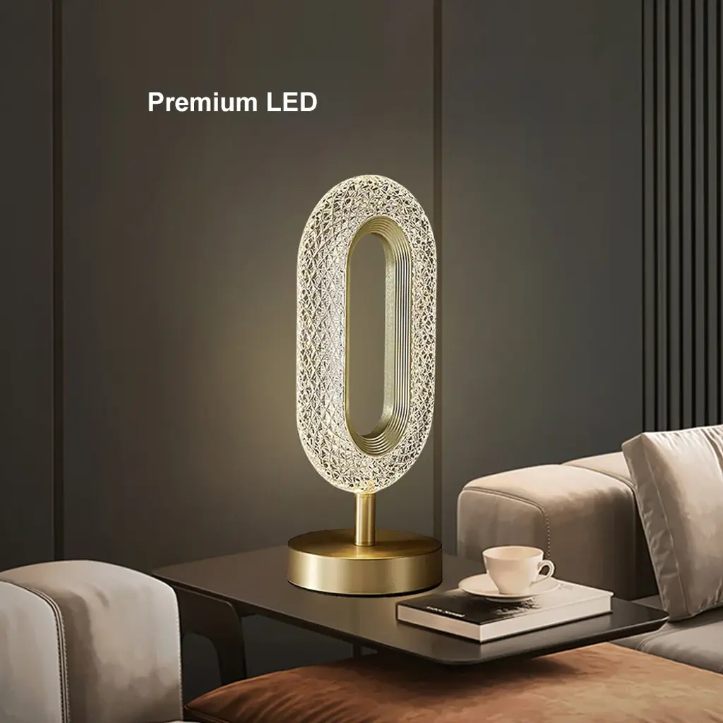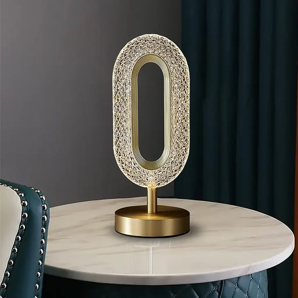 Ovated Modern Led Table Lamp Plug In Desk Lamps For Living Room Ring Shape In Gold