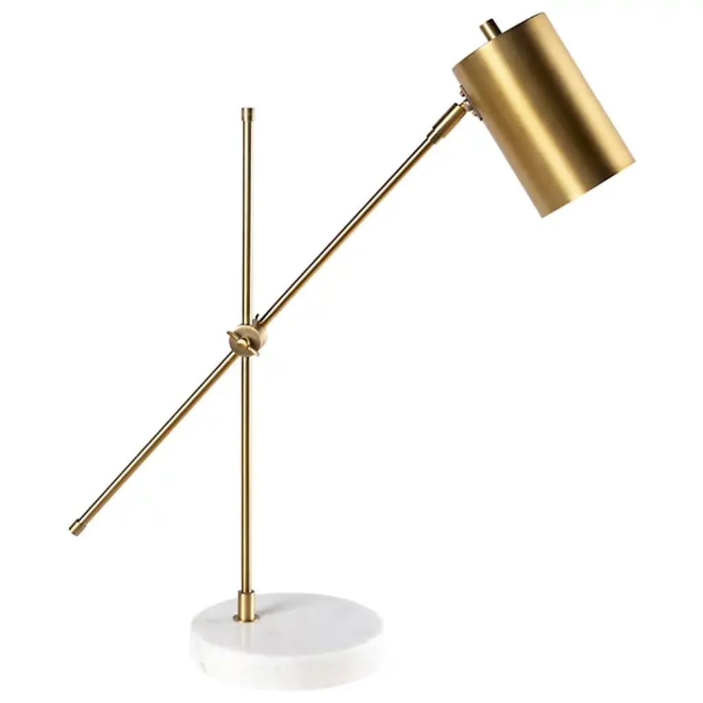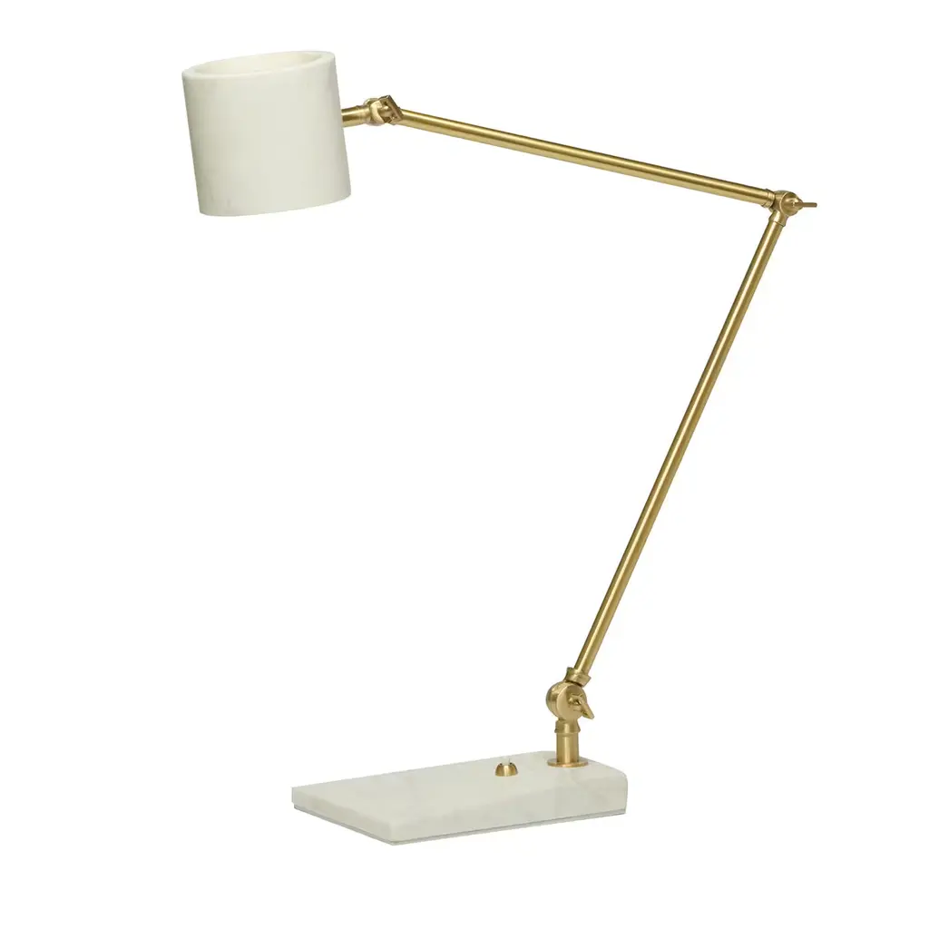 With a dually adjustable design, the Arnoldi Desk Lamp is modern architecture for the room. The brass finish and marble base give it a touch of classic elegance.