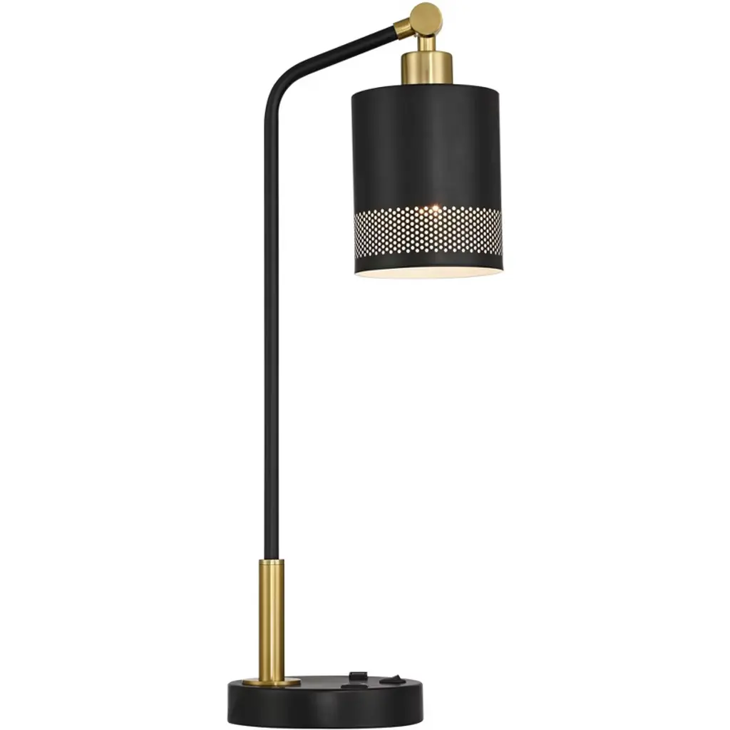 Sleek, stylish, and made for modern living, the Possini Euro Keller desk lamp blends sharp design with everyday functionality. The angular profile and two-tone black and brass finish create a bold, contemporary look perfect for workspaces, nightstands, or reading corners. The round base includes a built-in USB port and standard power outlet, ideal for charging devices or powering small electronics. Whether you’re working late or winding down, the Keller desk lamp delivers smart convenience with elevated style.
