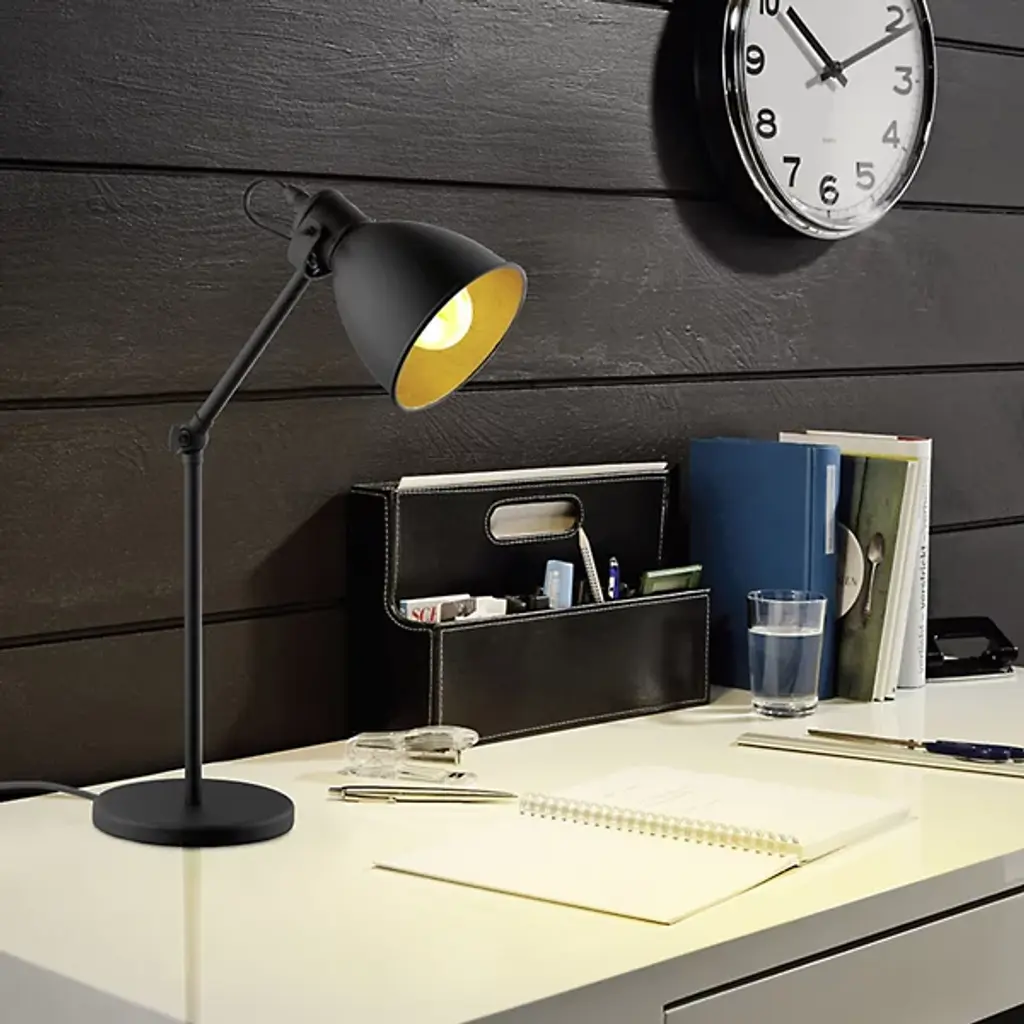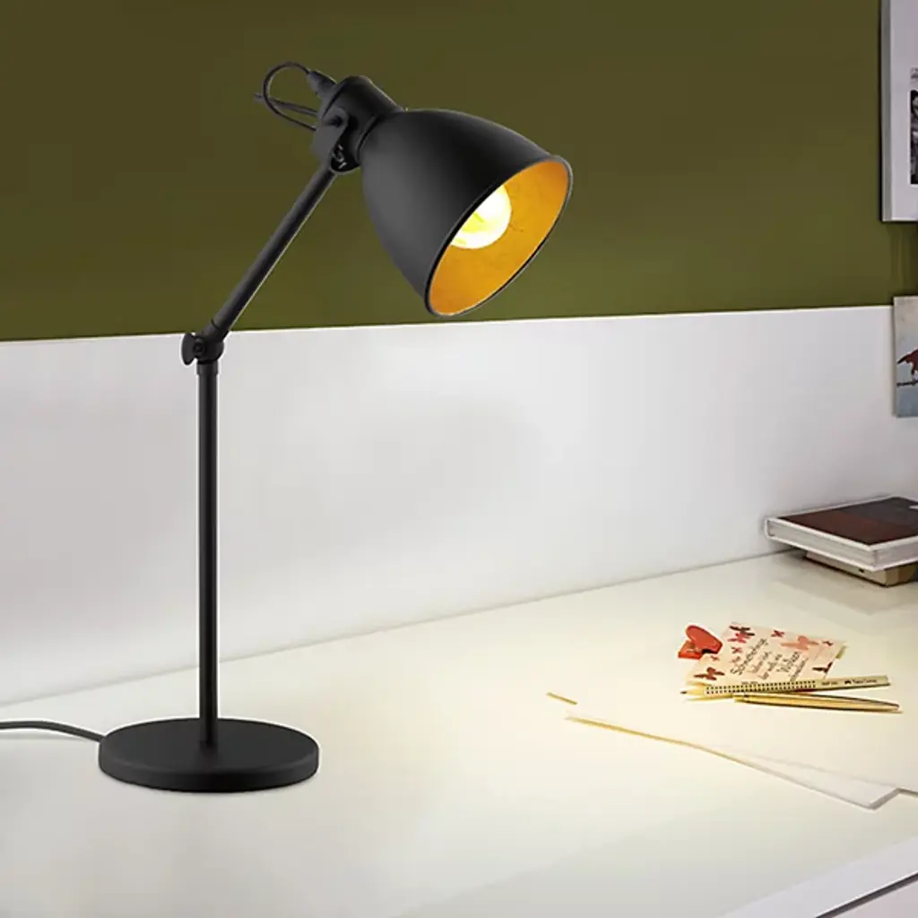 Upgrade your home office, living room, or bedroom with this contemporary lamp: the Priddy 2 Desk Lamp from Eglo. It features an adjustable arm and an adjustable coned lamp shade, allowing for seamless lighting flexibility and directional customization. Easily turn the lamp on and off with the switch at the top of the lamp head. This desk lamp is compatible with LED bulbs, comes with mounting hardware, and is made from steel.