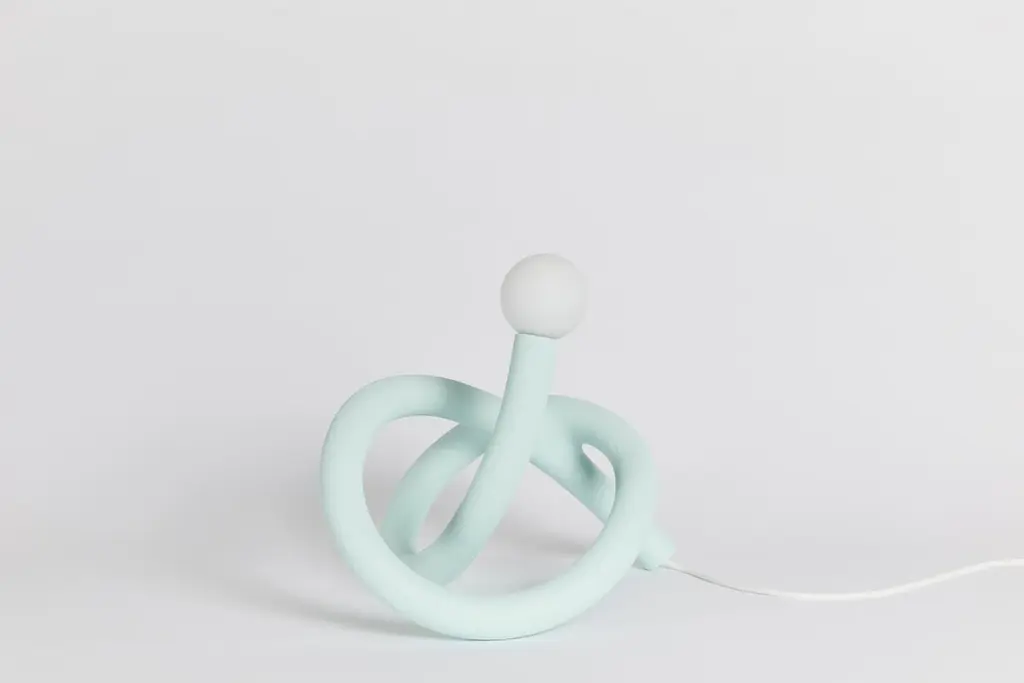 Random Limited Edition Modern Sand and Nylon Desk Lamp by Hot Wire ExtensionsLimited EditionMaterials: Waste SLS 3D nylon powder, sand from sustainable sourcesDimensions: W 33 x L 47 x H 34 cm Colour: aquaAlso available in: lemon, cream, anthracite, grey, pinkAll our lamps can be wired according to each country. If sold to the USA it will be wired for the USA for instance.Hot Wire Extensions is a young sustainable design brand, presenting a bold innovative manufacturing process.Exploration is central to our philosophy and the Hot Wire Extensions process is conceivedwith this in mind. Using waste SLS 3D nylon powder, a material that is currently not recycled, and inspired by the way a vine grows around a tree, we reuse the material to create organic bone-like structures builtaround a wire.We design and develop a diverse range of products, furniture and installations as well as bespoke commissions all characterised by our dedication to the mindful exploration ofnew material landscapes.